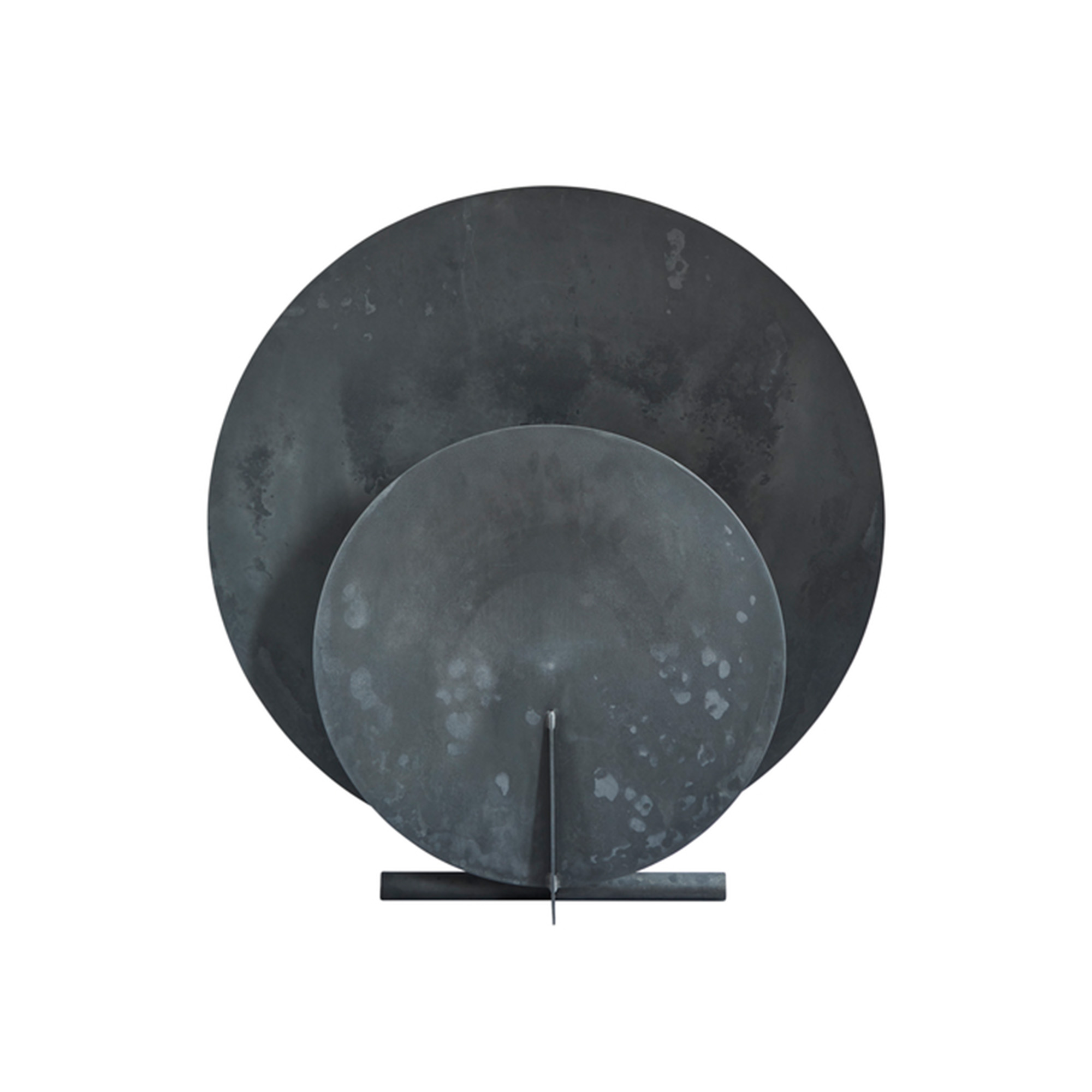 AD Floor Lamp från varumärket 101 Copenhagen, formgiven av Kristian Sofus Hansen & Tommy Hyldahl. AD Floor Lamp är ett unikt sätt att lysa upp ett rum. Den här unika lampan har en aluminiumbas med detaljer i oxid samt två rundade aluminiumskärmar. Dessa skärmar har en texturerad yta som ger ljuset ett visst djup och skapar en intim atmosfär. Den här mångsidiga lampan erbjuder både direkt och indirekt belysning, vilket skapar ett intimt intryck. Med sina arkitektoniska detaljer och råa material tillför AD Floor Lamp garanterat en modern charm till hemmet eller kontoret.