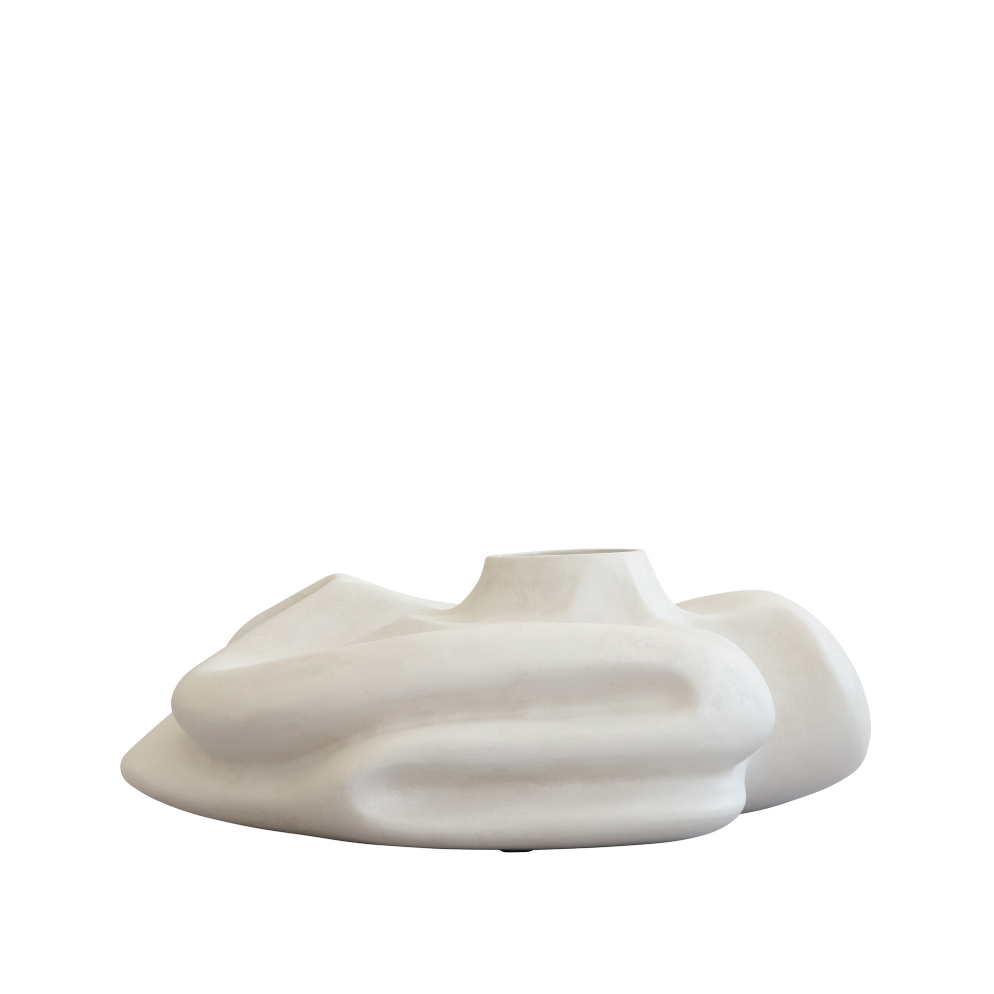 Wabi Vase från 101 Copenhagen, designad av Kristian Sofus Hansen och Tommy Hyldahl, är inspirerad av Wabi-Sabi-filosofin, som lyfter fram skönheten i det ofullständiga. Den skulpturala vasen har organiska, ojämna former och bidrar med en konstnärlig touch till interiören. Varje vas har en unik matt textur tack vare den handglaserade ytan och små variationer från det handgjorda tillverkningsprocessen. Insidan är glaserad med vattentät lack, vilket gör vasen lämplig för färska blommor.