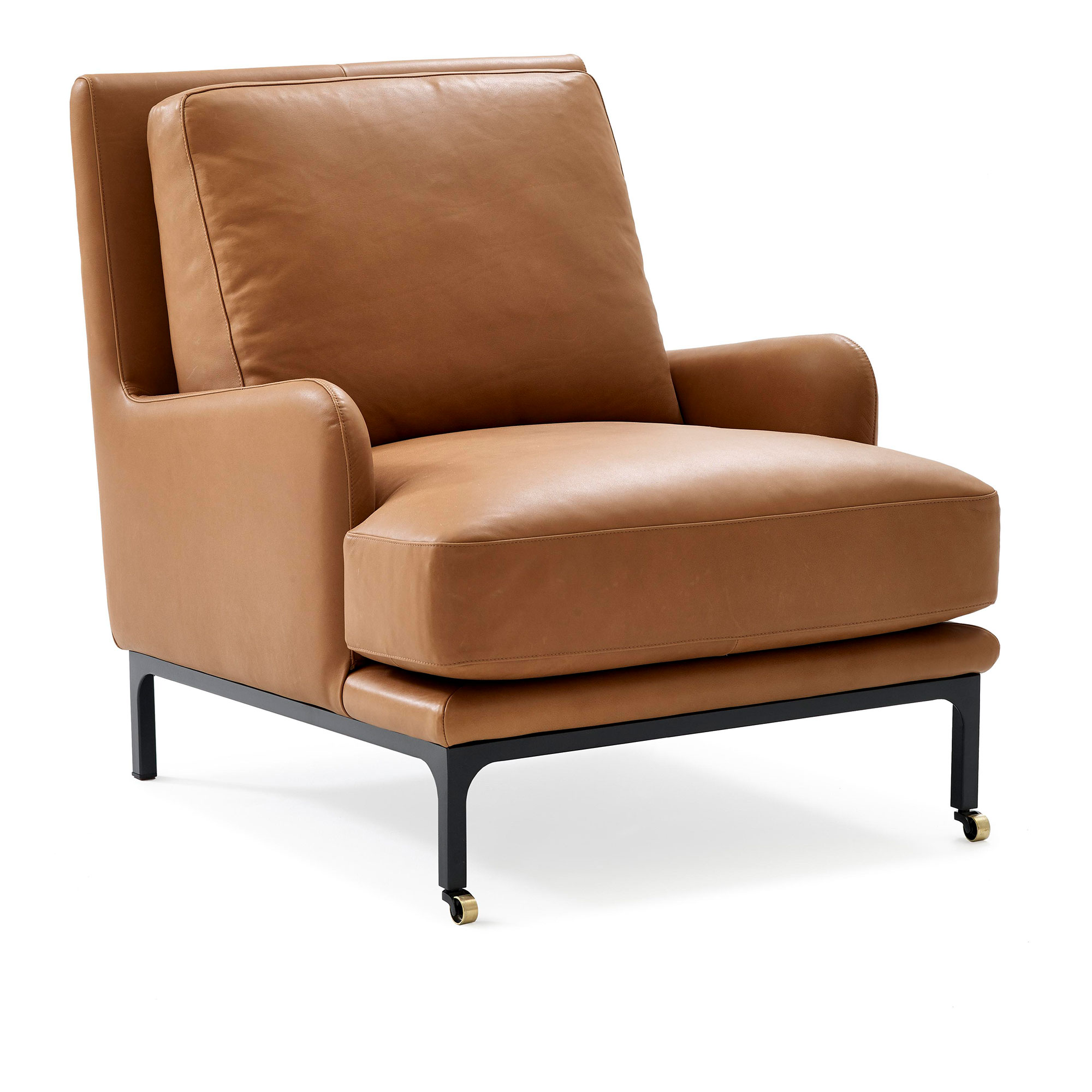 Adea - Mr. Jones Chair, Fabric Upholstery, Castor Front Leg, Master 53 - Fåtöljer - Alexander Lervik - Brun - Läder/Metall