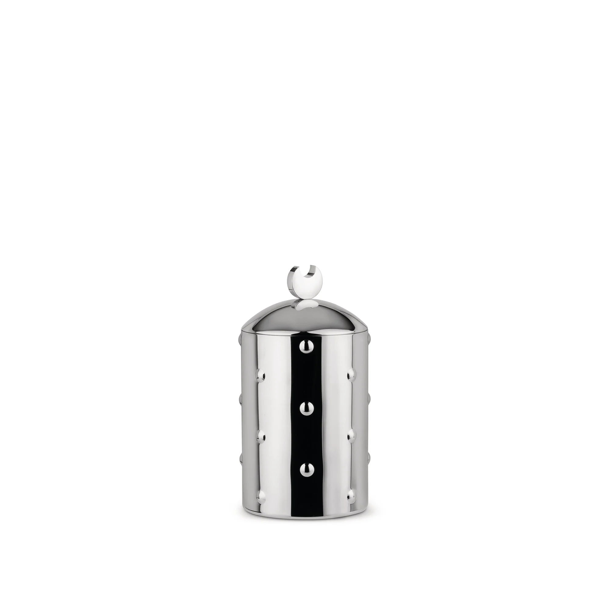 Kalistò Kitchen Box, designad av Clare Brass för Alessi, är en del av en serie bestående av tre stilfulla förvaringsburkar tillverkade i polerat rostfritt stål. Den här burken är perfekt för förvaring av torrvaror som kaffebönor, te, mjöl, nötter och pasta, och passar även för att ordna saker på ett snyggt sätt i olika utrymmen. Med en kapacitet på 1,1 liter och tillverkad av 18/10 rostfritt stål, är burken utrustad med ett tätslutande lock för att hålla innehållet torrt och fräscht.