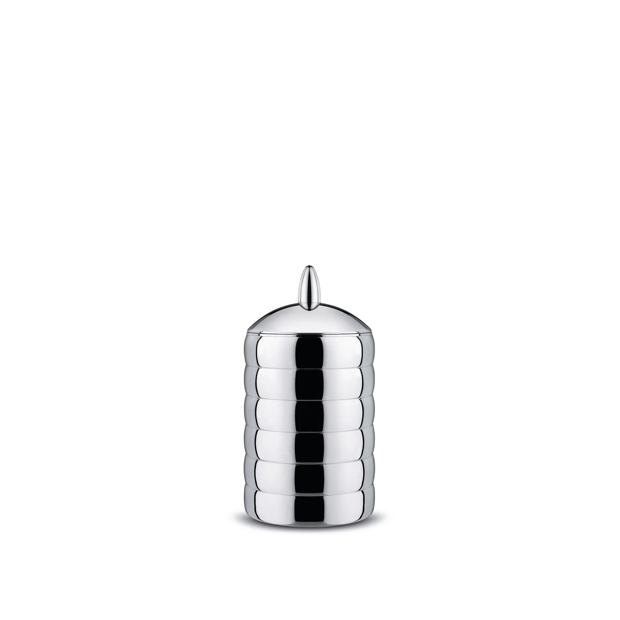 Kalistò Kitchen Box, designad av Clare Brass för Alessi, är en del av en serie bestående av tre stilfulla förvaringsburkar tillverkade i polerat rostfritt stål. Den här burken är perfekt för förvaring av torrvaror som kaffebönor, te, mjöl, nötter och pasta, och passar även för att ordna saker på ett snyggt sätt i olika utrymmen. Med en kapacitet på 1,1 liter och tillverkad av 18/10 rostfritt stål, är burken utrustad med ett tätslutande lock för att hålla innehållet torrt och fräscht.