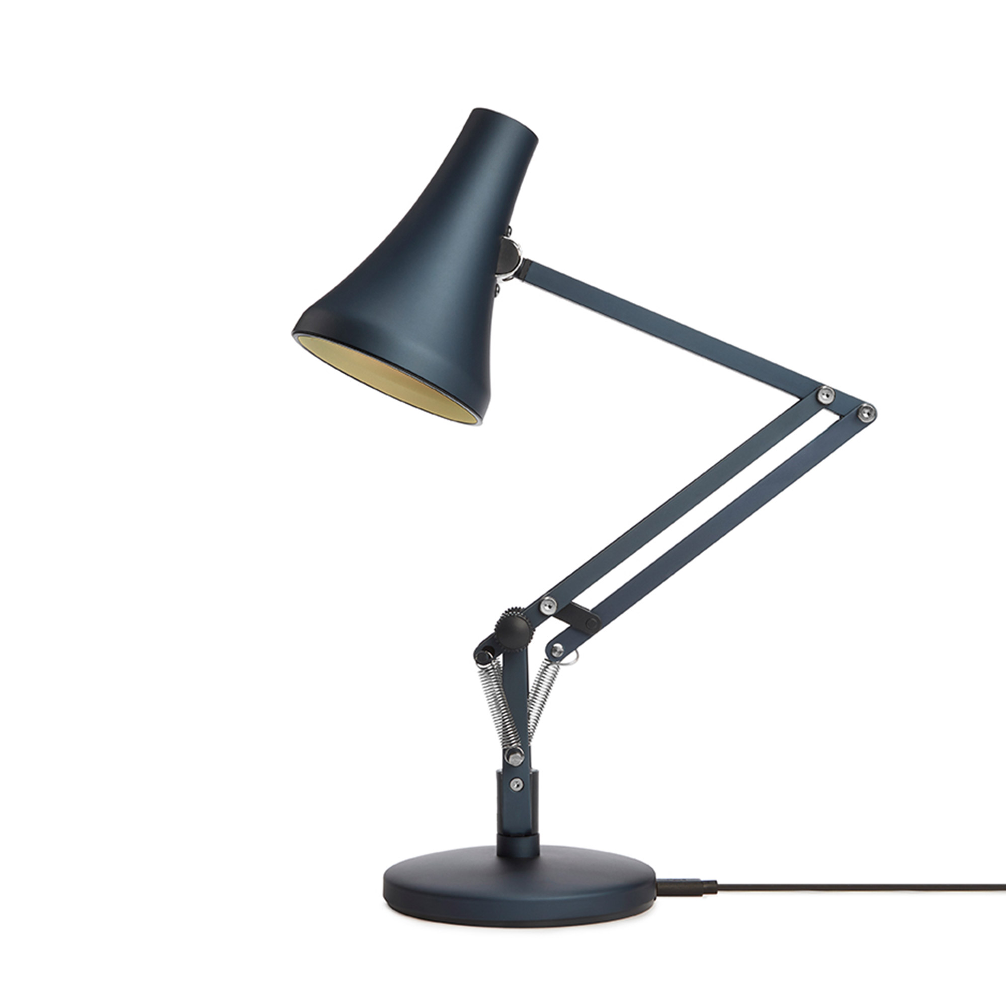 90 Mini Mini Desk Lamp är en nätt skrivbordslampa formgiven av George Carwardine för Anglepoise. Skrivbordslampan är en miniversion av den omtyckta bordslampan Model 90 från Anglepoise som släpptes på 1970-talet. 90 Mini Mini har likt de övriga lamporna i kollektionen ett tidlöst industriellt uttryck, där högkvalitativa materialval och funktionalitet kombineras med elegans. Lampskärmen och armen är tillverkad av aluminium och har en formgjuten bas av järn. Det smidiga formatet på 90 Mini Mini gör den kompatibel i flera miljöer och inredningsstilar, samtidigt som den enkelt kan förflyttas och laddas upp igen med hjälp av en USB-kabel.