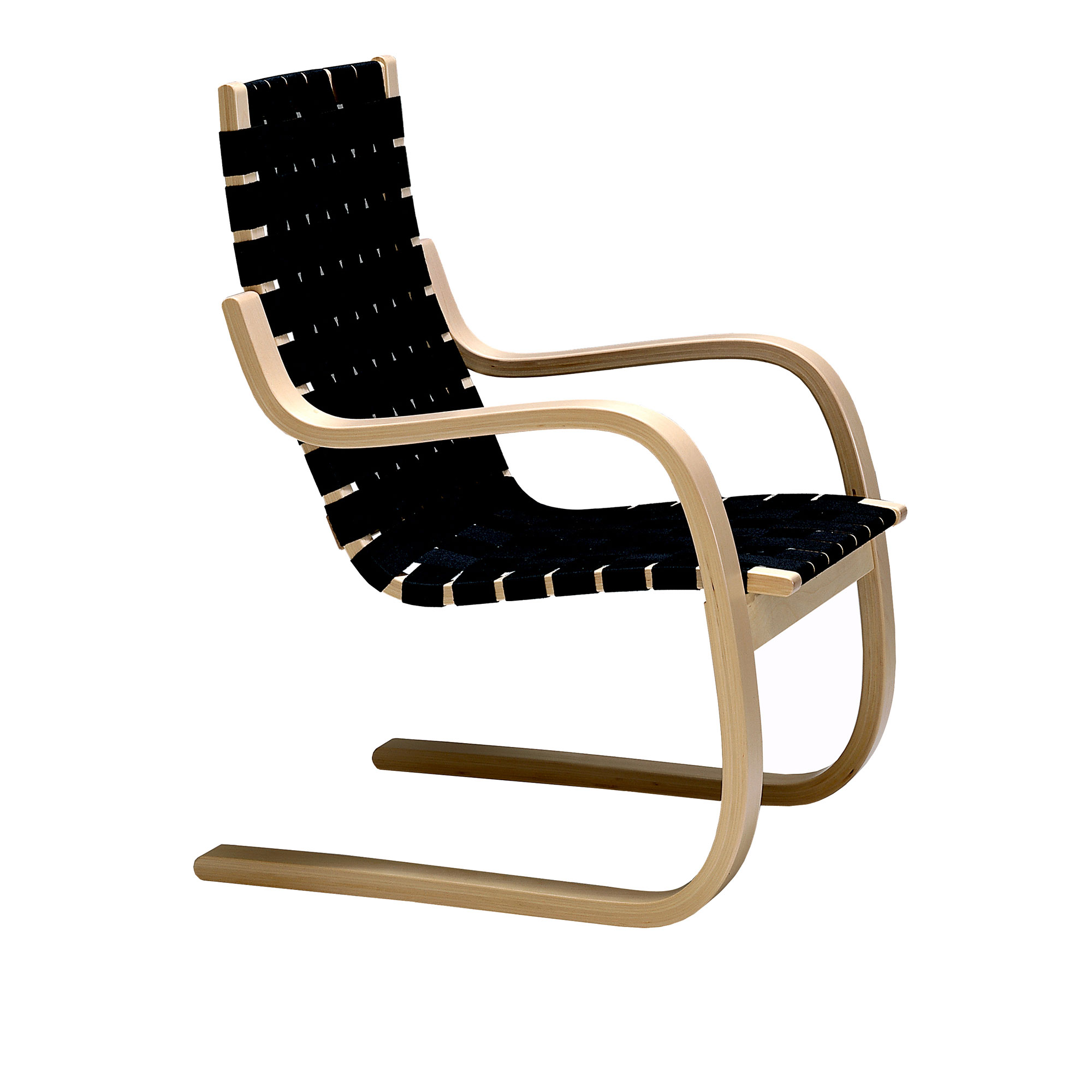 Artek - Fåtölj 406, Svart sadelgjord - Fåtöljer - Alvar Aalto - Svart - Trä/Textilmaterial