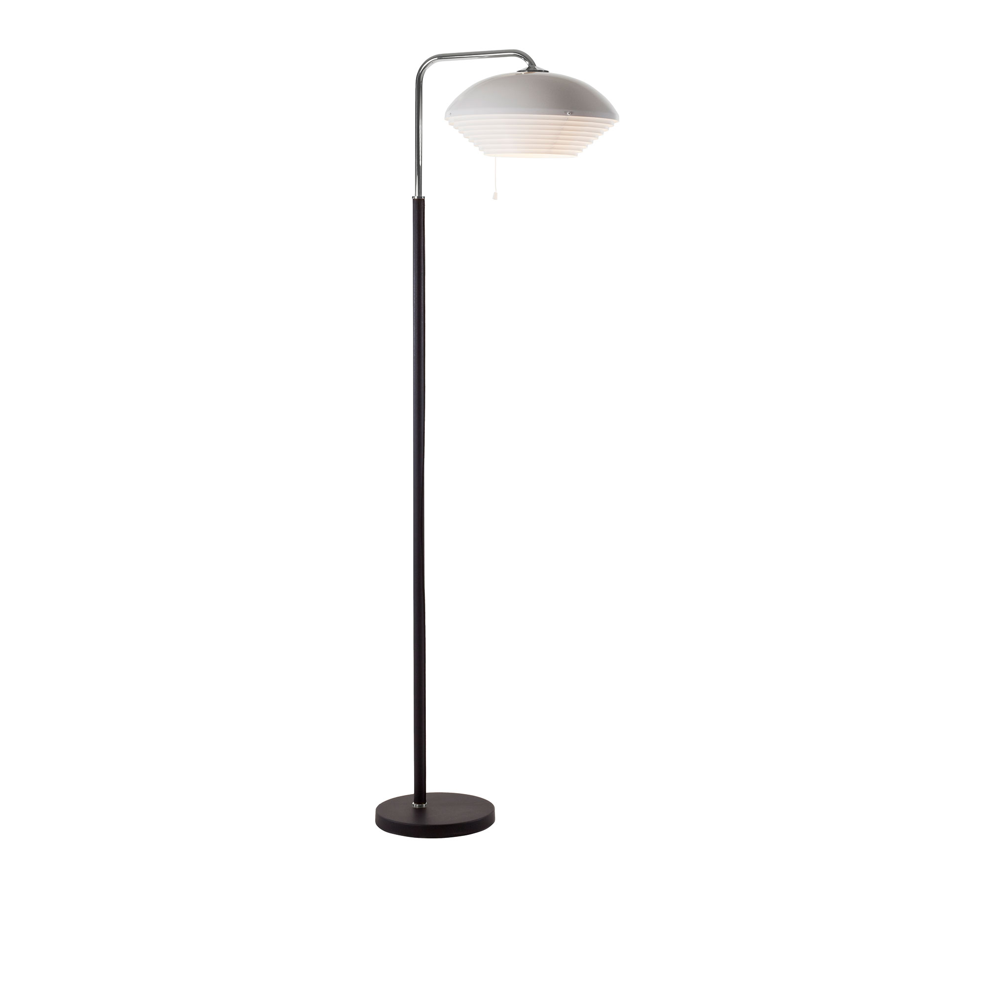 Golvlampan A811 skapades år 1965 som det sista tillägget till Alvar Aaltos serie golvlampor, och produceras av det finska varumärket Artek. Stativet och basen är tillverkad av stål och klätt i svart läder med en övre del i polerad mässing eller nickelpläterad mässing. Lampskärmen övergår sedan till handspunnet och nitat lamellstål som skapar ett säreget uttryck och spridet ett jämnt ljussken utan att blända. Golvlampan A811 passar utmärkt till vardagsrummet, kontoret eller sovrummet och är lika vacker tänd som släckt.