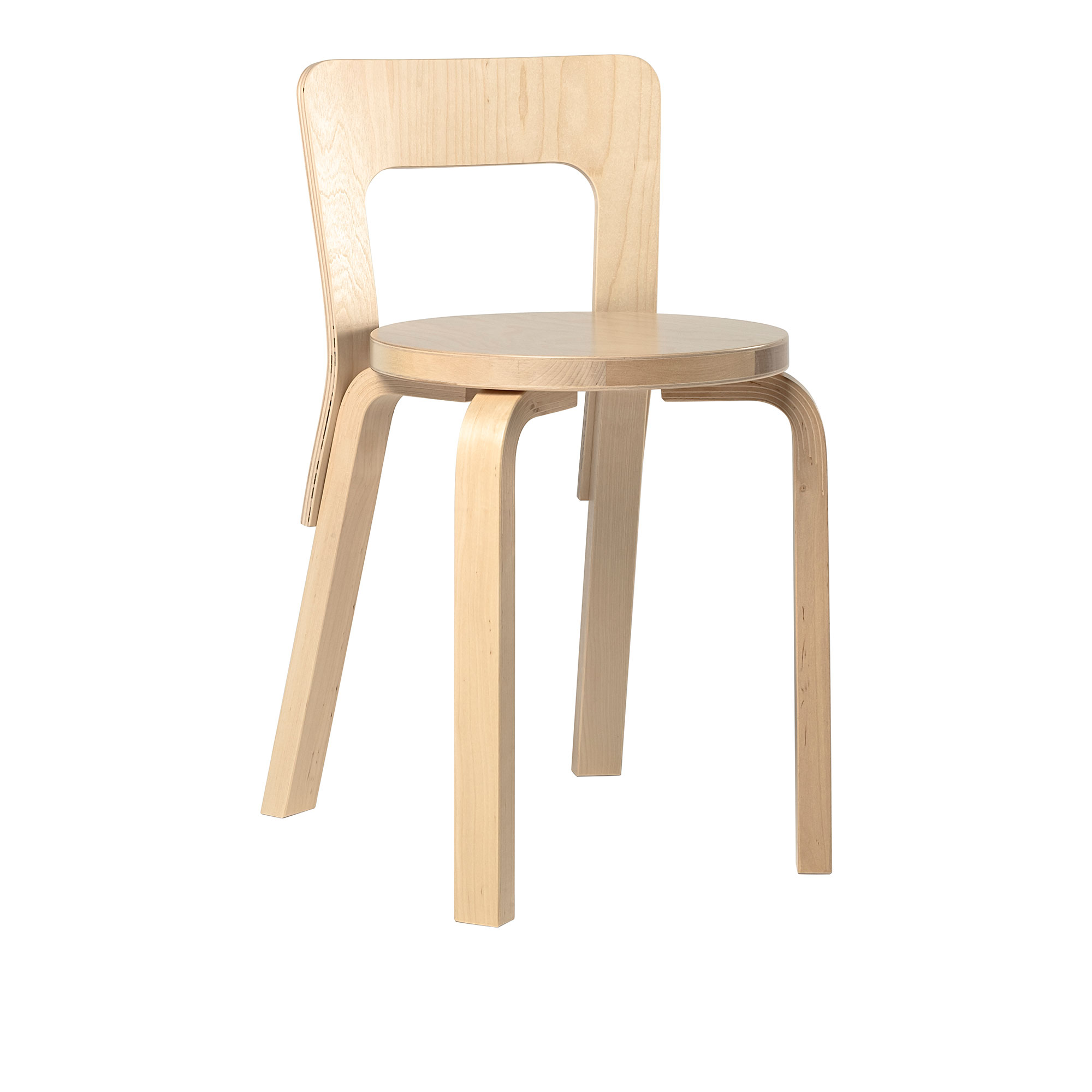 Stol 65 är formgiven av Alvar Aalto år 1935 och produceras av möbeltillverkaren Artek. Den klassiska designen har förblivit modern genom åren och ingår, precis som flera av Aaltos möbler, i en samling på Modern Museum of Arts i New York. Stolen har Aaltos karakteristiska runda sits och L-formade ben som är hopfästa med ryggen och tillverkade av formpressad björk. Ryggstödet är lågt och rektangulärt, tillverkat av ett enda stycke björkplywood med en lätt kurva som följer ryggen, ger komfort och stöd. Tack vare ryggstödets höjd kan stolen lätt skjutas in under ett matbord eller skrivbord. Stol 65 finns i flera olika utföranden.