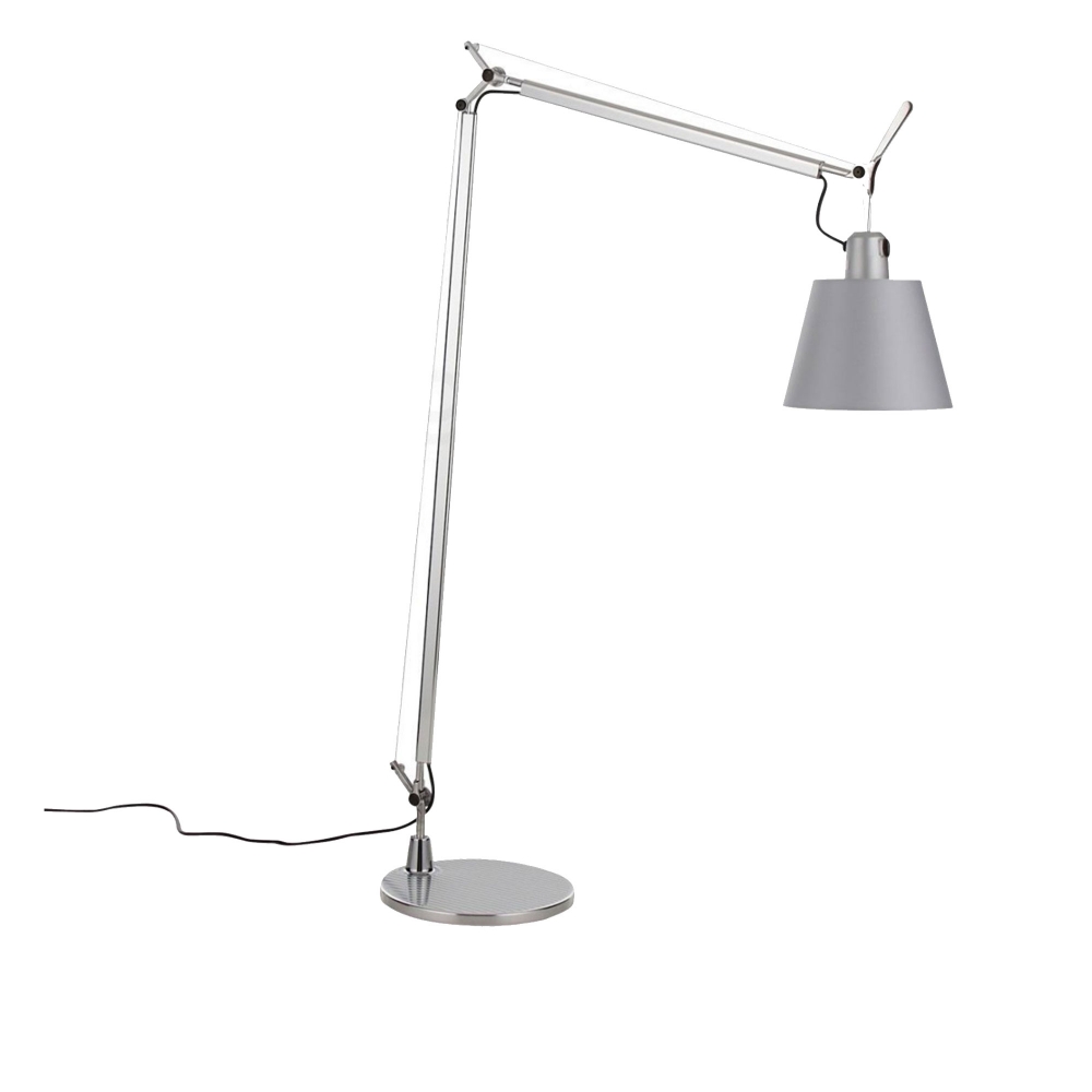 Artemide - Tolomeo Basculante Reading Golvlampa, Skärm i Grå satintyg - Läslampor - Giancarlo Fassina,Michele De Lucchi - Silver