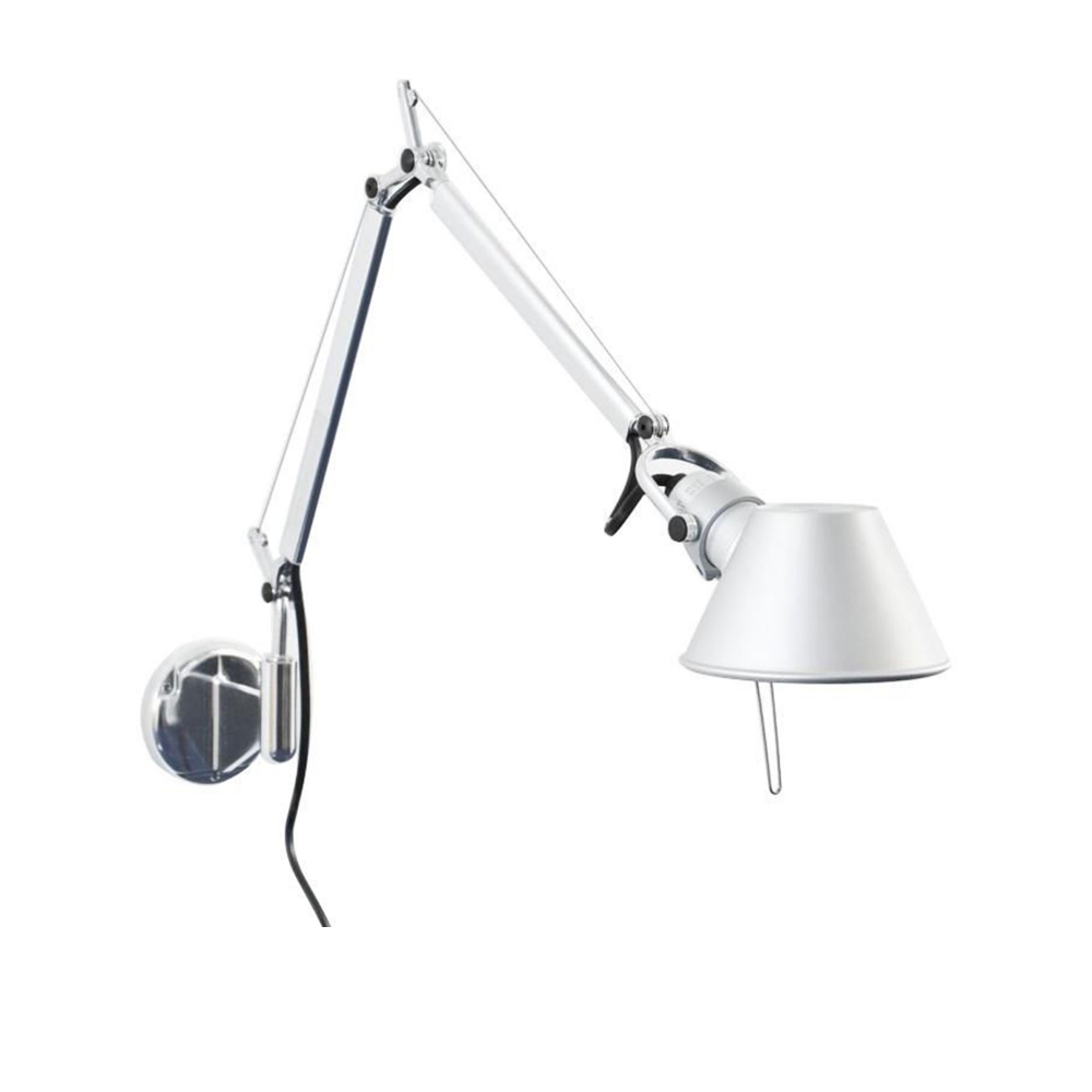 Tolomeo Micro Parete vägglampa är formgiven av Giancarlo Fassina och Michele de Lucchi för Artemide. Som namnet Micro indikerar är detta den minsta av Tolomeo vägglampor och har justerbar arm och fäste i polerad aluminium och en skärm i matt, anodiserat aluminium. Lampan, som är liten och smidig, kan monteras antingen vid skrivbordet eller ovanför sängen. Vägglampan justeras enkelt så att du kan rikta ljuset dit du önskar och enkelt vika in lampan så att den inte är i vägen. Kommer i 6 färger, väggfästet är alltid i silver. Observera att ljuskällan ej ingår.