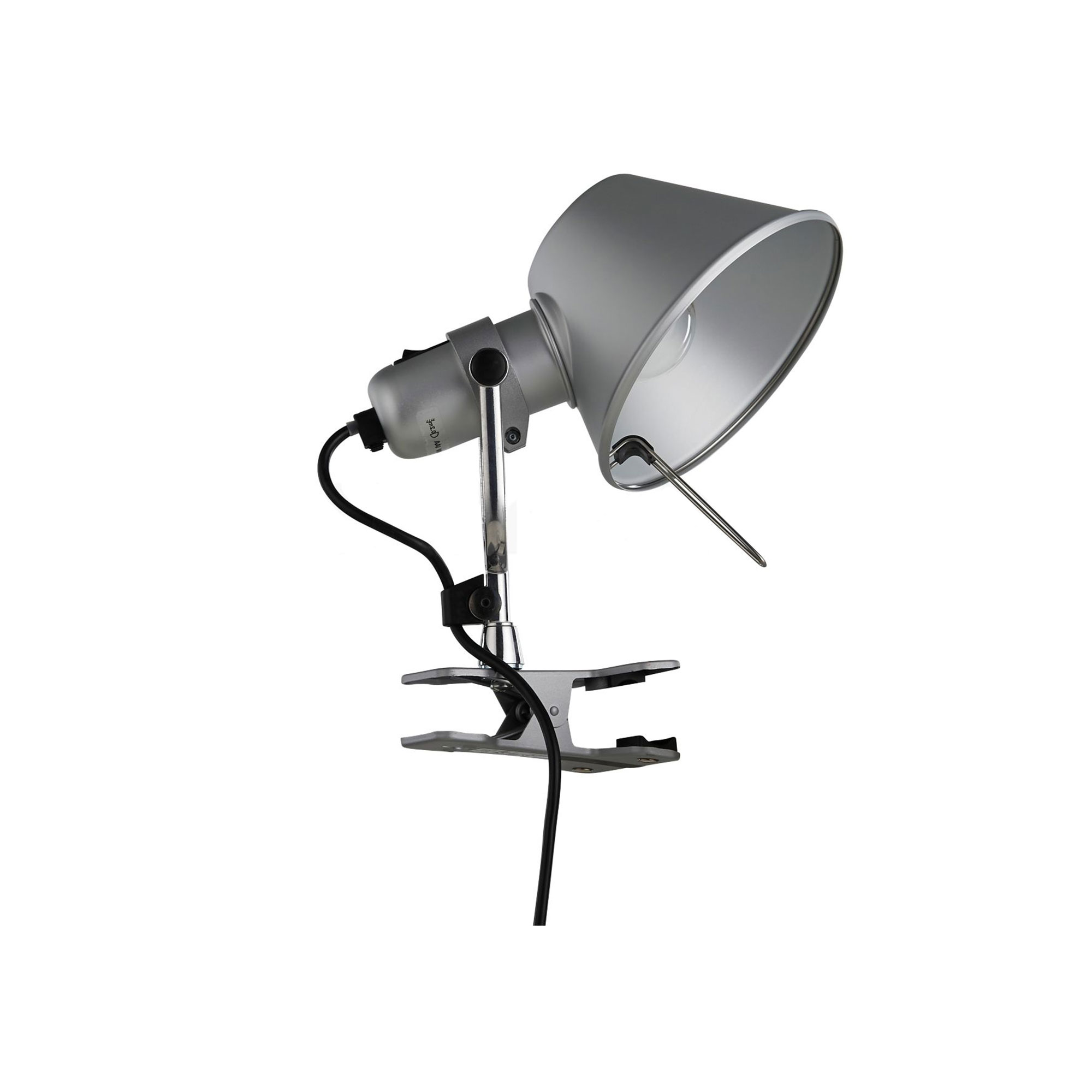 Tolomeo Pinza Clip Aluminium – cliplampa från det italienska varumärket Artemide. Med Tolomeo Pinza kan du rikta ljuset precis hur du vill, oavsett var du fäster den. Skärmen går att luta uppåt och nedåt och armen i polerat aluminium roterar runt sitt fäste. Du säkrar lampans position genom att justera kabellängden. Den stadiga klämman är försedd med hål så att du även kan hänga upp lampan på väggen. Tolomeo Pinza ger ett mycket bra riktat ljus samtidigt som den lilla öppningen på skärmens topp sprider ett stämningsfullt allmänt ljus.