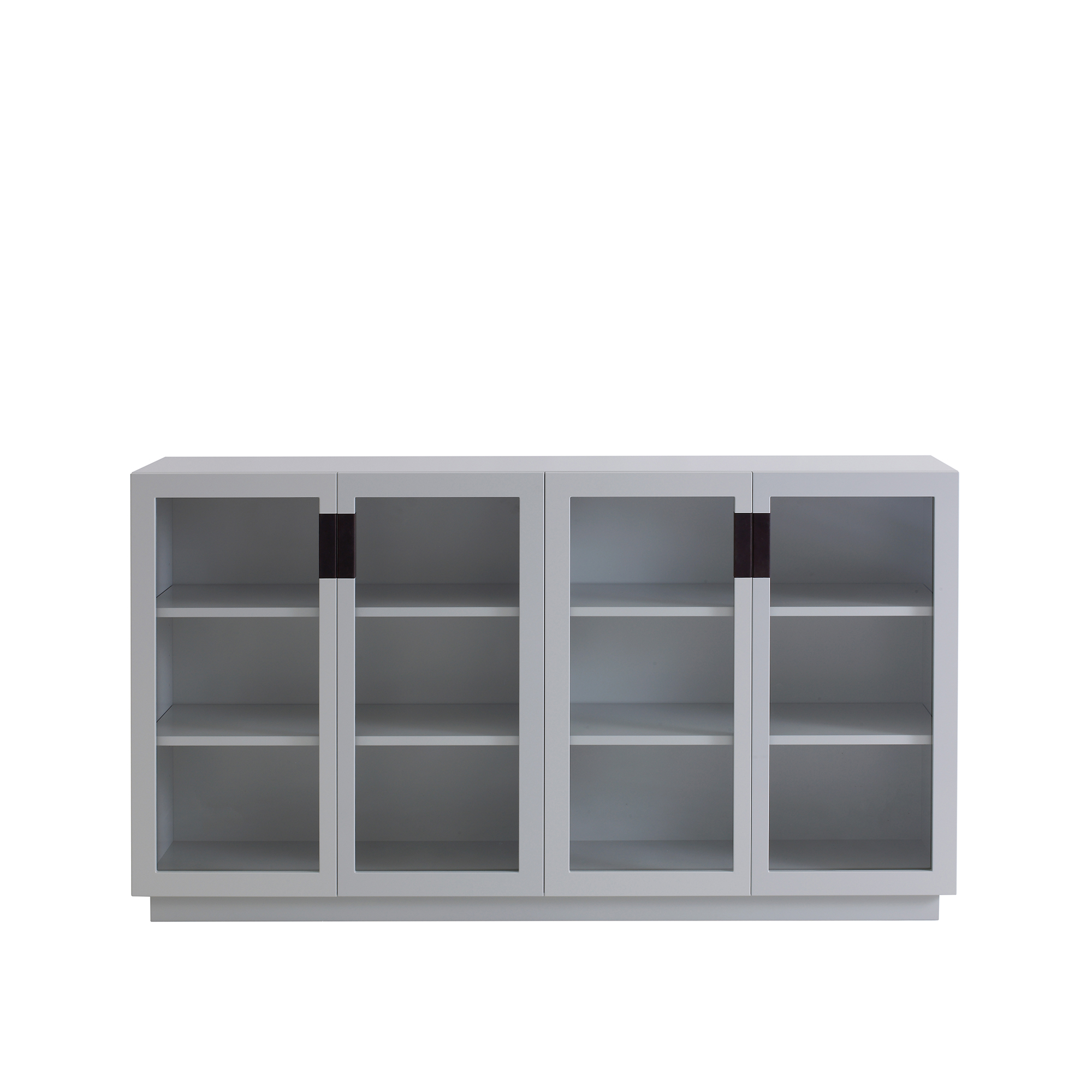 Asplund - Frame 160 Medium Glass Doors - Light Grey / Black Leather - Skåp och vitrinskåp - Anya Sebton & Eva Lilja Löwenhielm 2011 - Grå - Glas/MDF/Läder