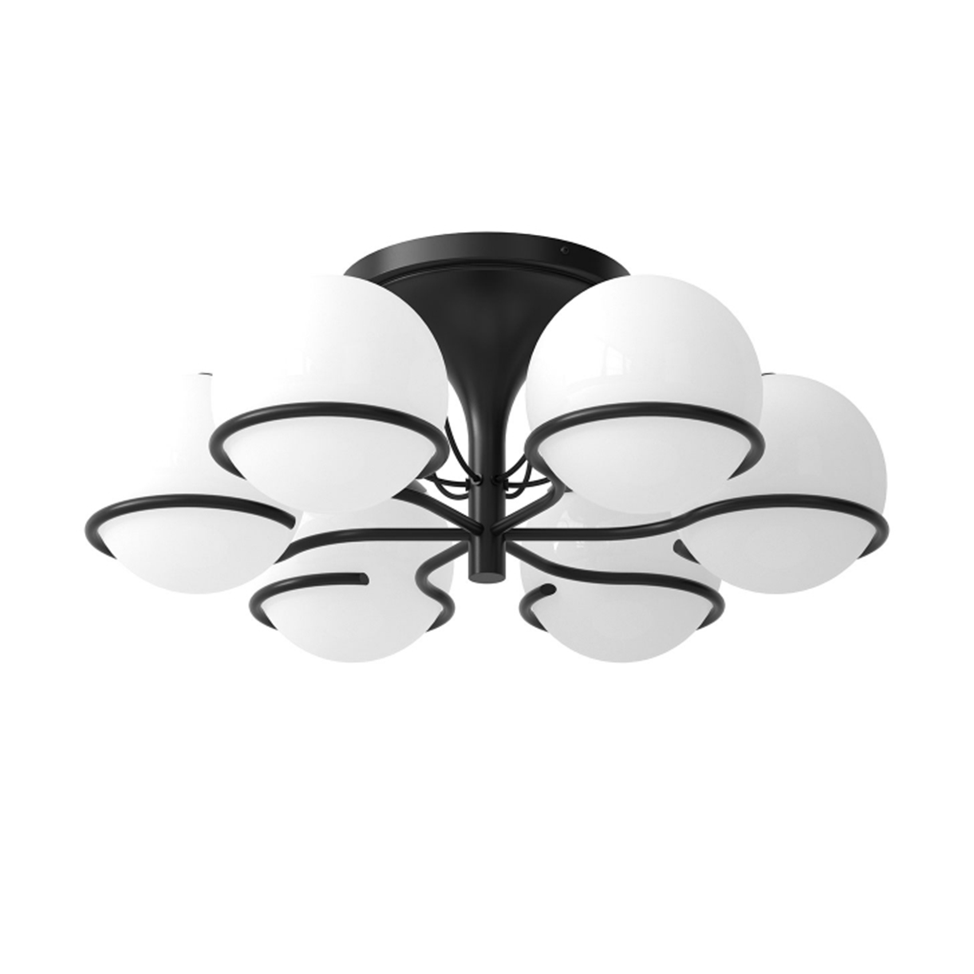 Astep - Model 2042/6, 6 Opaline Spheres (20cm Diameter), Black Mount - Plafonder - Gino Sarfatti - Svart