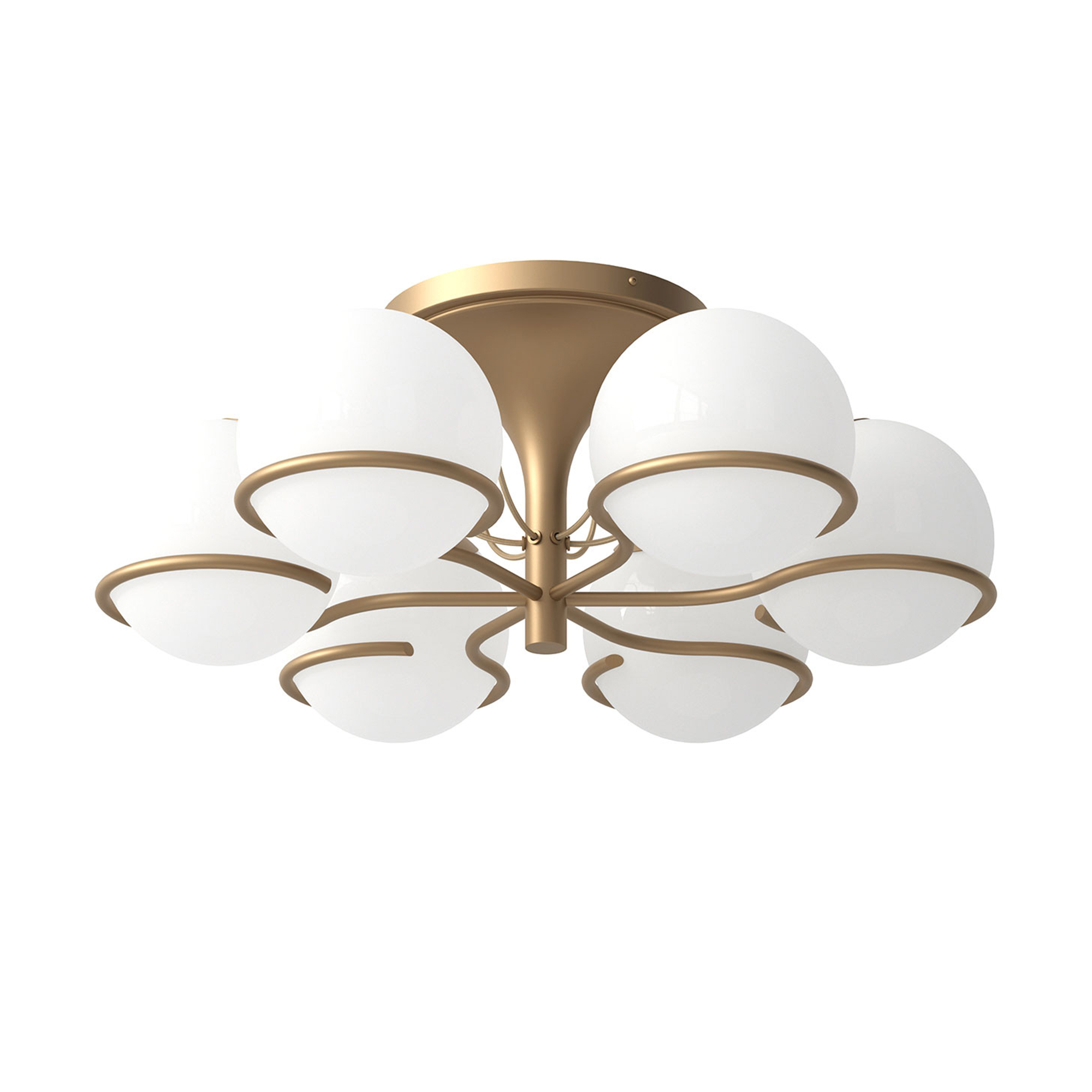Astep - Model 2042/6, 6 Opaline Spheres (20cm Diameter), Champagne Mount - Plafonder - Gino Sarfatti - Guld,Vit