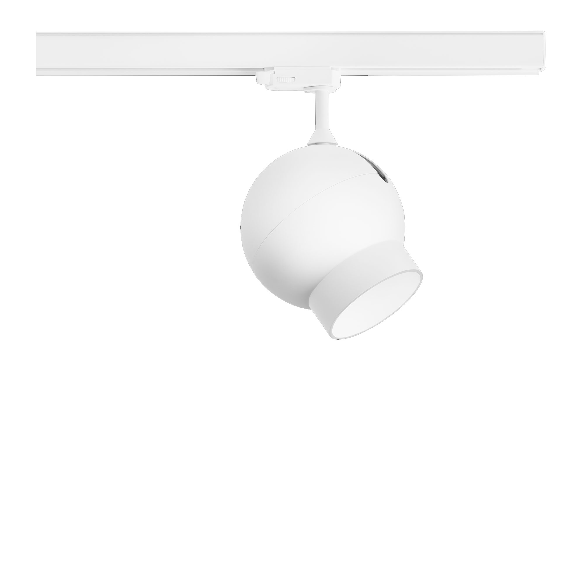 Ogle taklampa är en riktbar lampa från Ateljé Lyktan, designad av Form Us With Love. Skärmen i formsprutad polykarbonat monteras på en 3-fasskena eller med FixPoint-fäste. Lampan ger flexibel belysning för olika miljöer och används för att skapa riktat ljus
