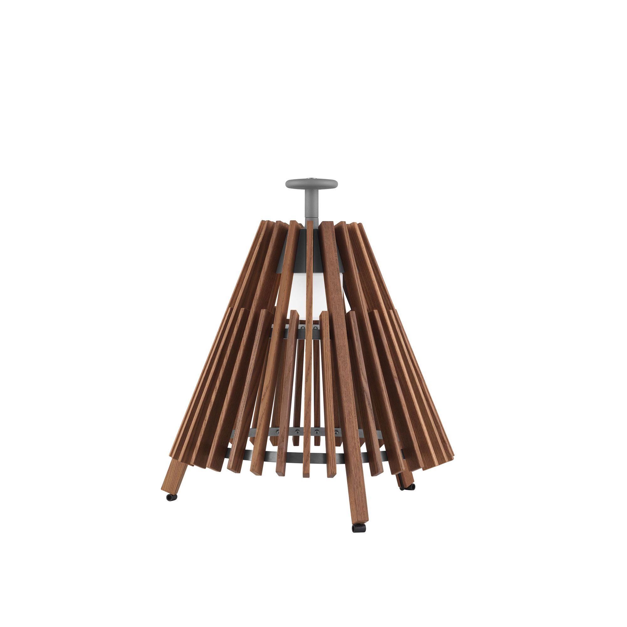 Tipi Golvlampa är formgiven av Mårten & Gustav Cyrén för varumärket Atelje Lyktan. Golvlampan är anpassad för både utom- och inomhusbruk och togs från början fram som en projektarmatur till Treehotel i Norrbotten. Den har en vacker struktur i form av träribbor som liknar kåtan och tälten som indianerna använde i Nordamerika. Tillsammans med dom hyvlade ribborna i värmebehandlad ask och inspiration från skogens natur, bidrar Tipi Golvlampa till en ombonad och behaglig känsla på balkongen, uteplatsen eller i trädgården. Tack vare det greppvänliga handtaget i aluminium är den även smidig att flytta runt.