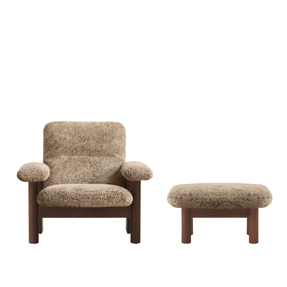 Audo Copenhagen - Brasilia Lounge Chair & Ottoman - Walnut/Sheepskin Sahara - Sittpuffar - Anderssen & Voll - Beige