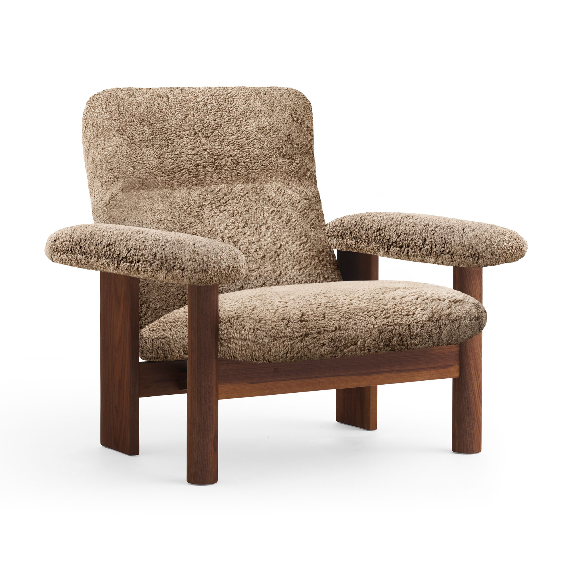 Audo Copenhagen - Brasilia Lounge Chair Solid Walnut Sheepskin Sahara - Fåtöljer - Anderssen & Voll - Träfärgad - Trä/Skum/Ull