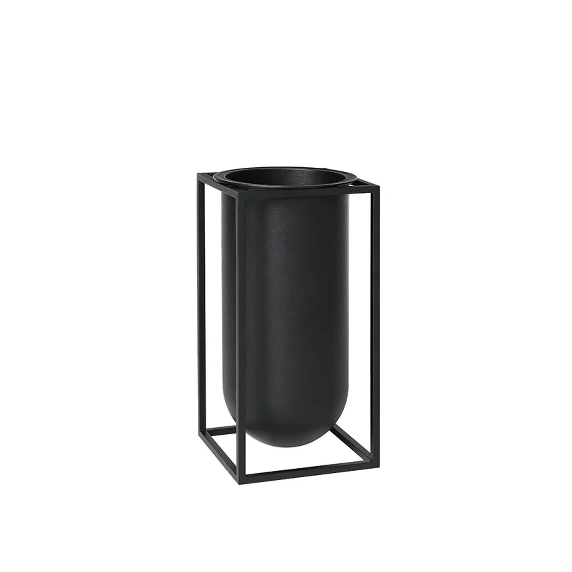 Designad av Mogens Lassen för Audo Copenhagen är Kubus Vase Lolo en naturlig förlängning av Kubus-serien, som inkluderar Kubus Line ljusstake och Kubus Bowl, tillsammans med Lassens ursprungliga ljusstaksdesign. Vasen är inramad av en metallkub och har en central kammare för att hålla blommor eller grenar. Denna minimalistiska, Bauhaus-inspirerade design är lika slående ofylld som när den är prydd med blommor. Kubus Vase Lolo förbättrar vilket utrymme som helst med sin geometriska elegans och tidlösa attraktionskraft, vilket gör den till ett mångsidigt tillskott till både moderna och traditionella interiörer. Dess rena linjer och funktionella design speglar Lassens engagemang för form och funktion och förkroppsligar essensen av det danska designarvet.