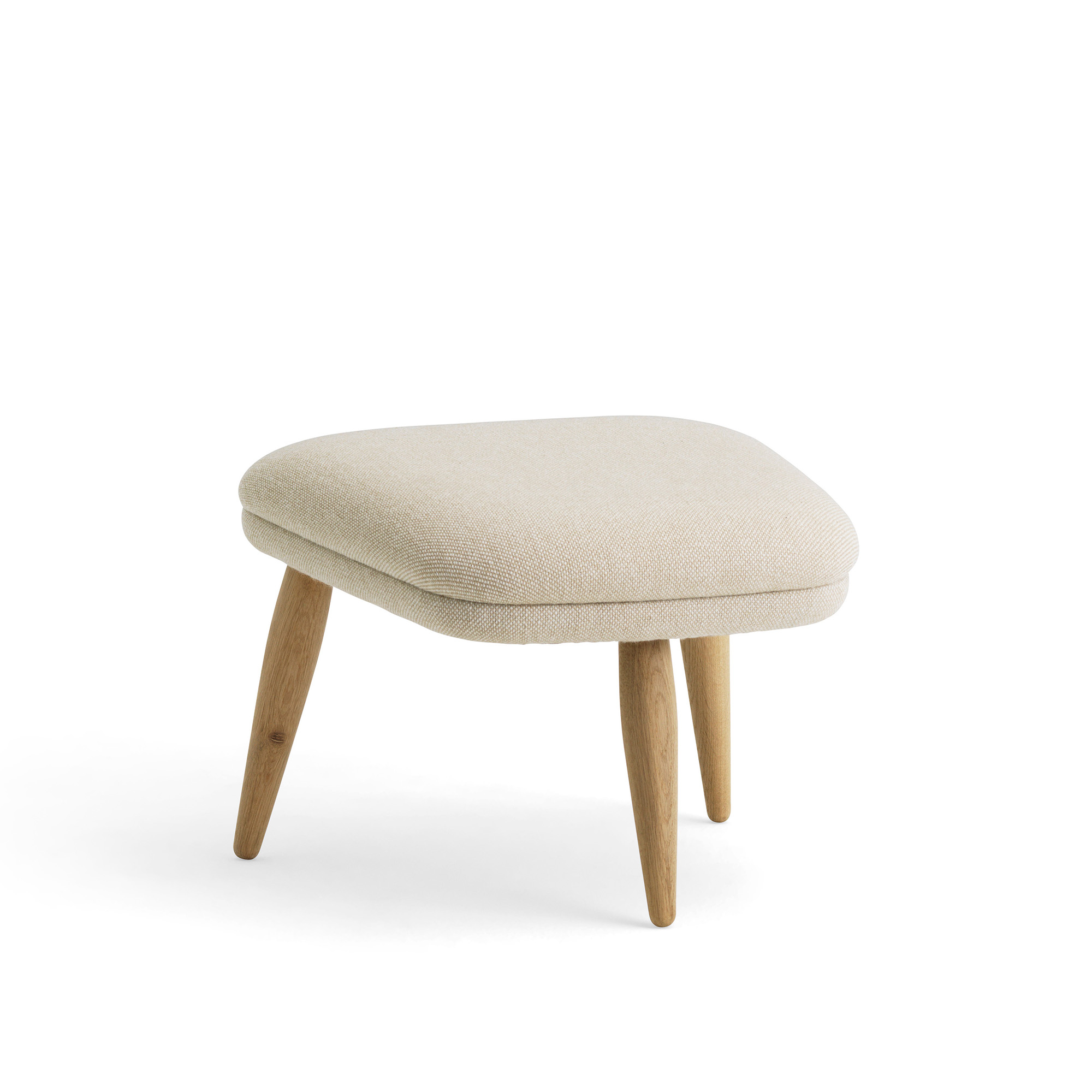 Oda Ottoman, från danske Audo Copenhagen är formgiven utav Arnold Madsen främst för att komplettera fåtöljen med samma namn men passar fint med andra möbler eller stående för sig själv. Benen är i massiv ek eller valnöt, sitsen mjukt stoppad. Fotpallen är klädd i Hallingdal 65, ett tyg i ull och viskos som är både tåligt och flexibelt.