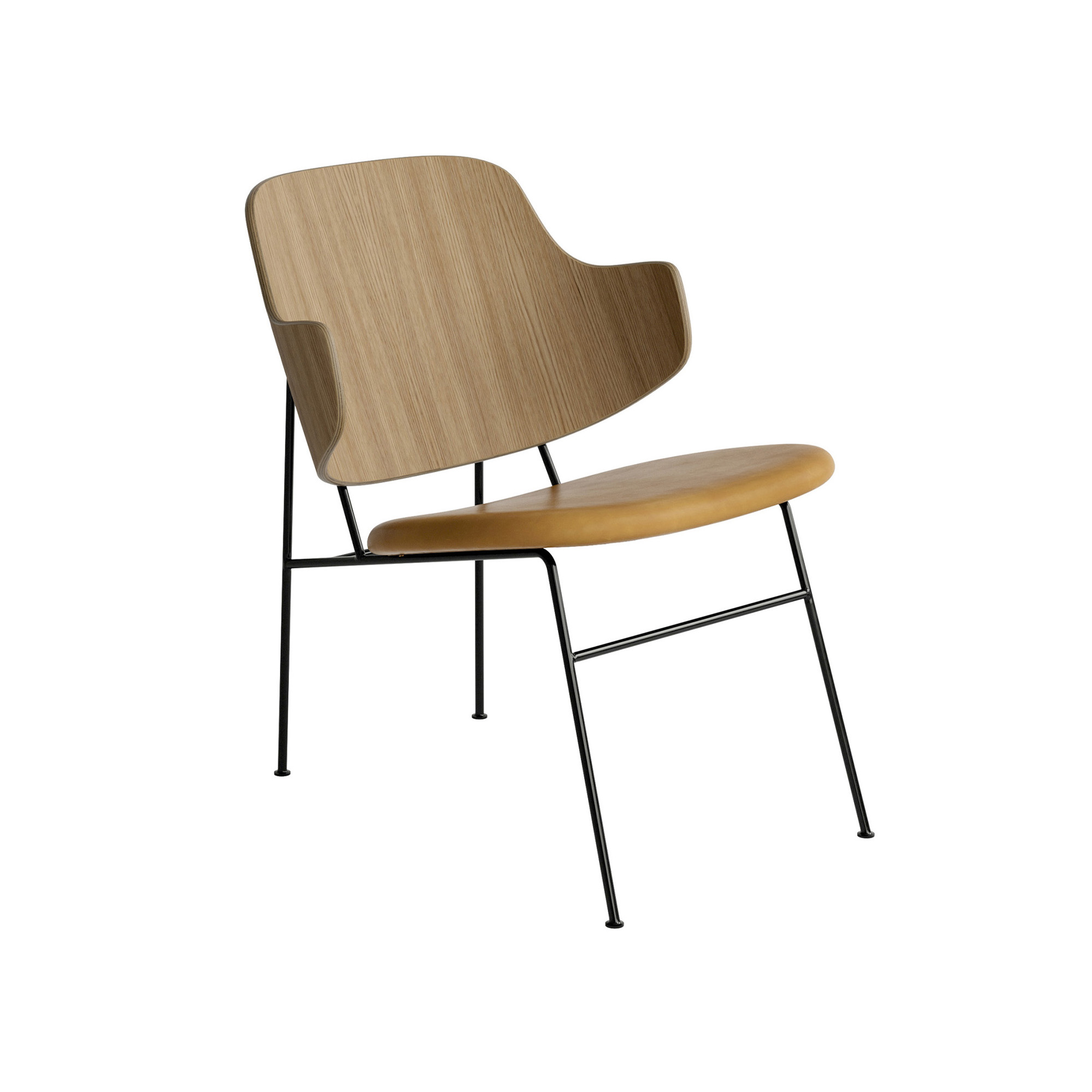 Audo Copenhagen - The Penguin Lounge Chair, Natural Oak, Dakar 0250 - Matstolar - Ib Kofod-Larsen - Brun - Läder/Metall/Trä