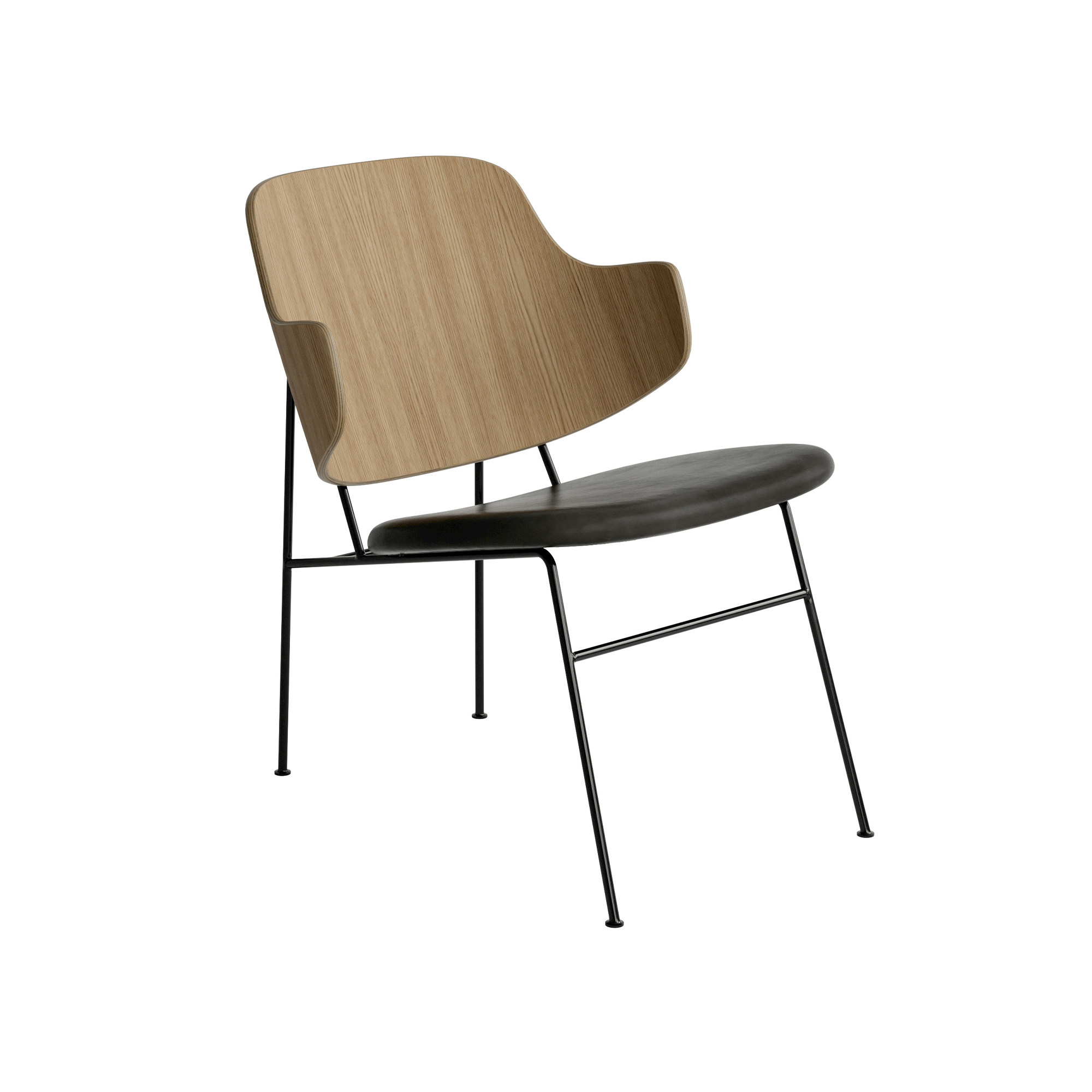 Audo Copenhagen - The Penguin Lounge Chair, Natural Oak, Dakar 0842 - Matstolar - Ib Kofod-Larsen - Svart - Läder/Metall/Trä