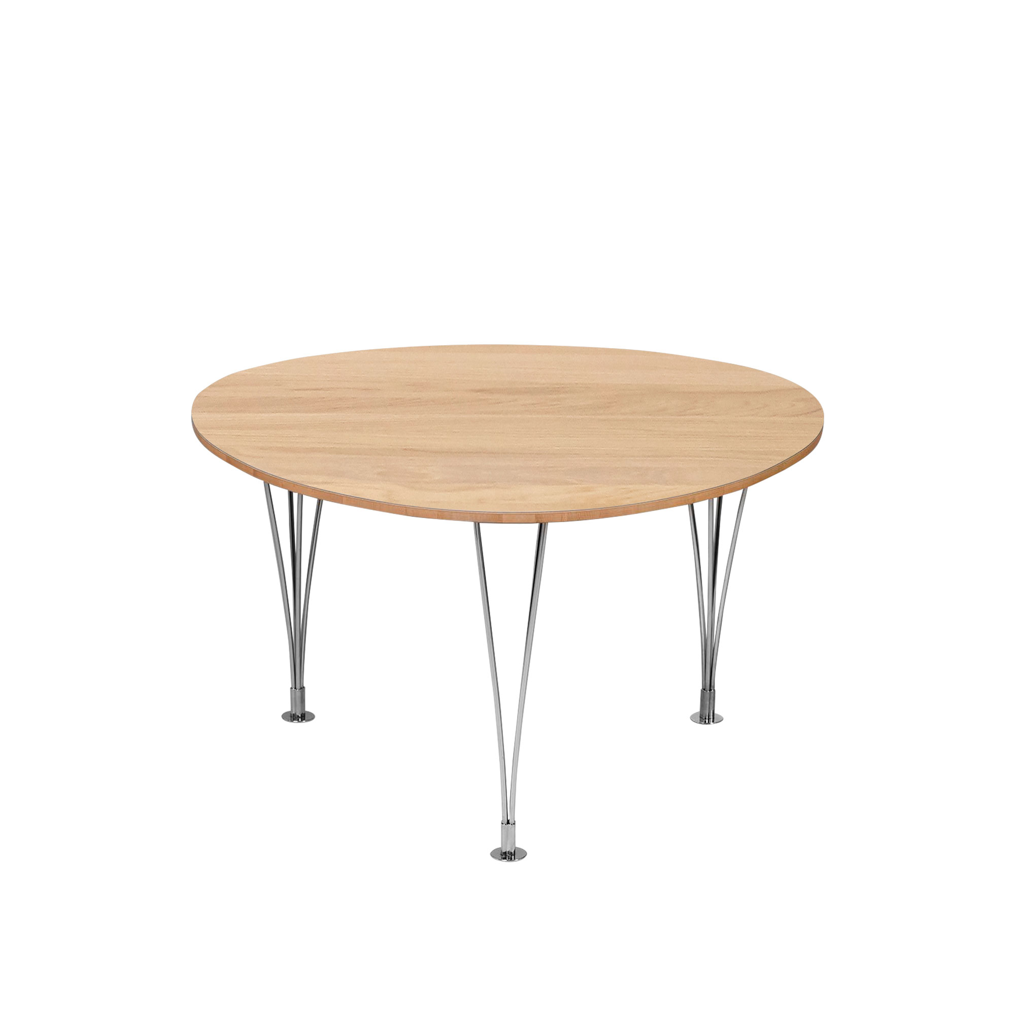 Bruno Mathssons skapelse, Trisuperellips, är ett unikt matbord med tre ben som såg dagens ljus 1964, tack vare hans framstående samverkan med Piet Hein. Detta bord har en skiva som är tillgänglig i flera utföranden: vit laminat, samt träslagen ask, bok, björk och ek. Dess form är en intressant hybrid mellan cirkulär och triangulär. På Nordiska Galleriet erbjuder vi även möjligheten att beställa Trisuperellips som ett elegant soffbord. Du kan utforska detta alternativ via denna länk: här.
