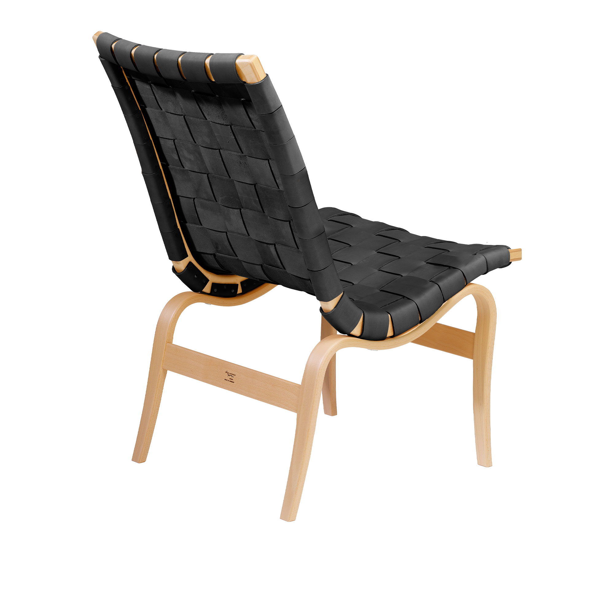 Bruno Mathsson International - Mi 471 Eva - Låg rygg utan armstöd - Klarlackad bok/Flätade läderremmar svart - Fåtöljer - Bruno Mathsson - Svart - Läder/Trä