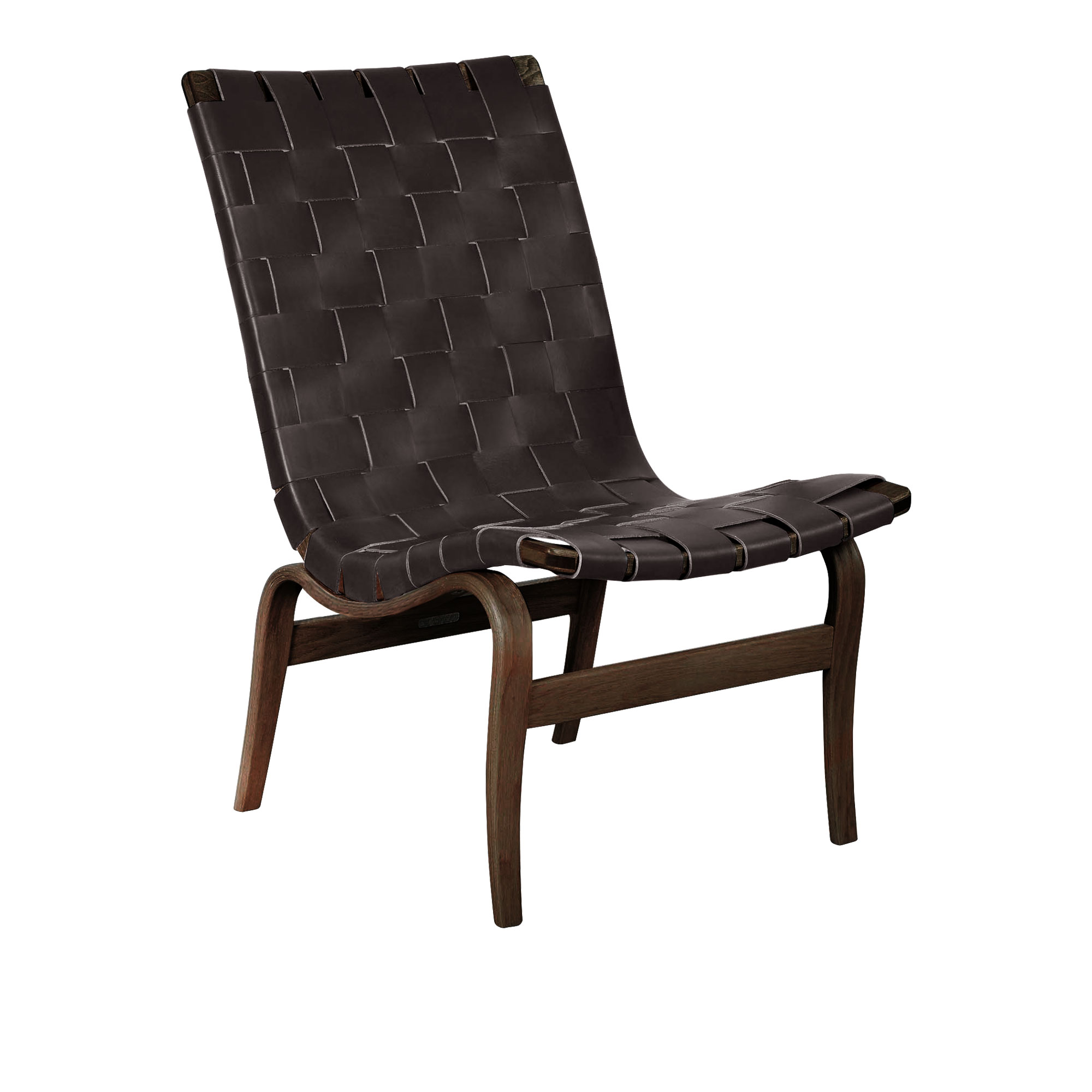 Bruno Mathsson International - Mi 471 Eva - Låg rygg utan armstöd - Rökoljad ek/Flätade läderremmar brun - Fåtöljer - Bruno Mathsson - Brun - Läder/Trä