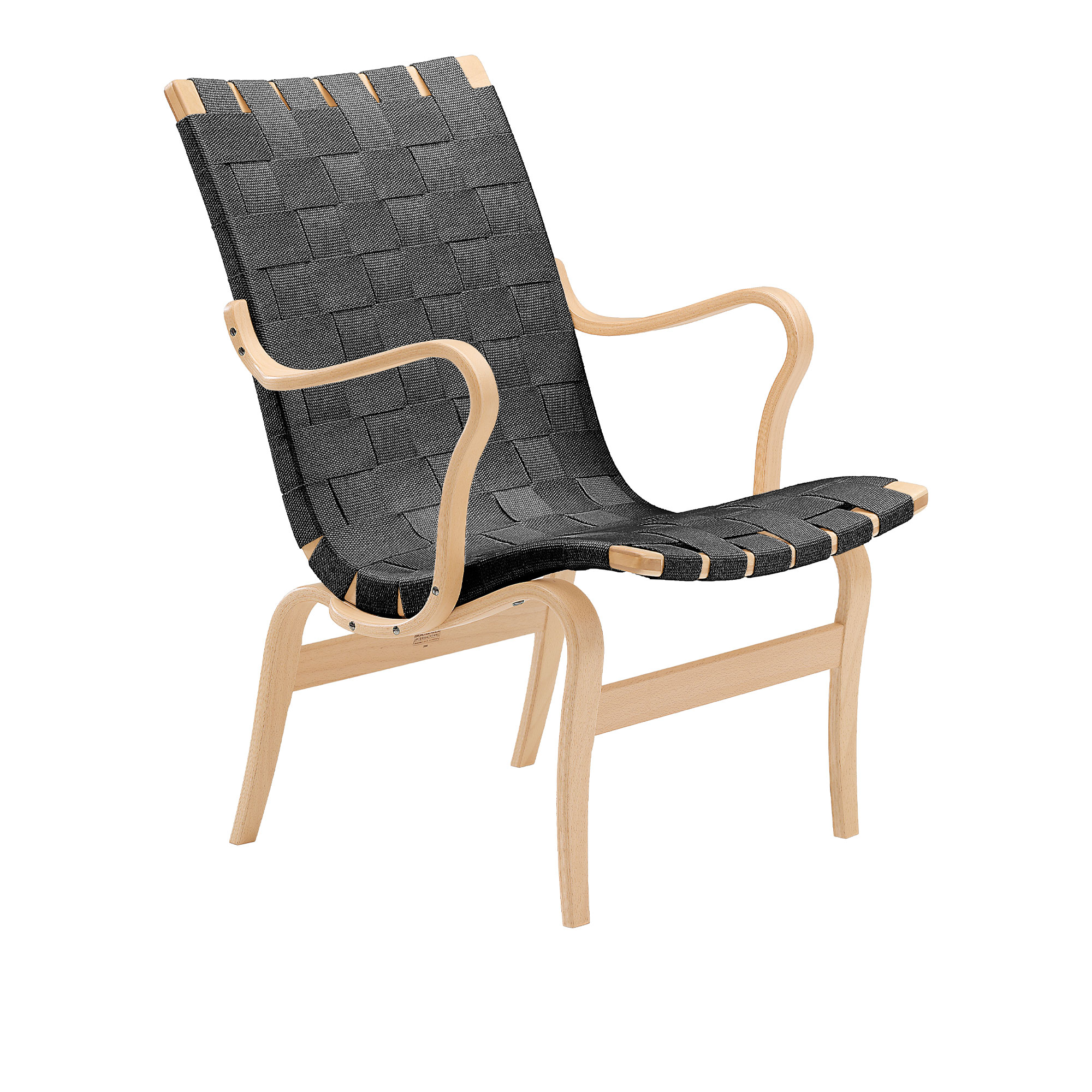 Bruno Mathsson International - Mi 472 Eva - Låg rygg med armstöd - Klarlackad bok/Flätad sadelgjord svart - Fåtöljer - Bruno Mathsson