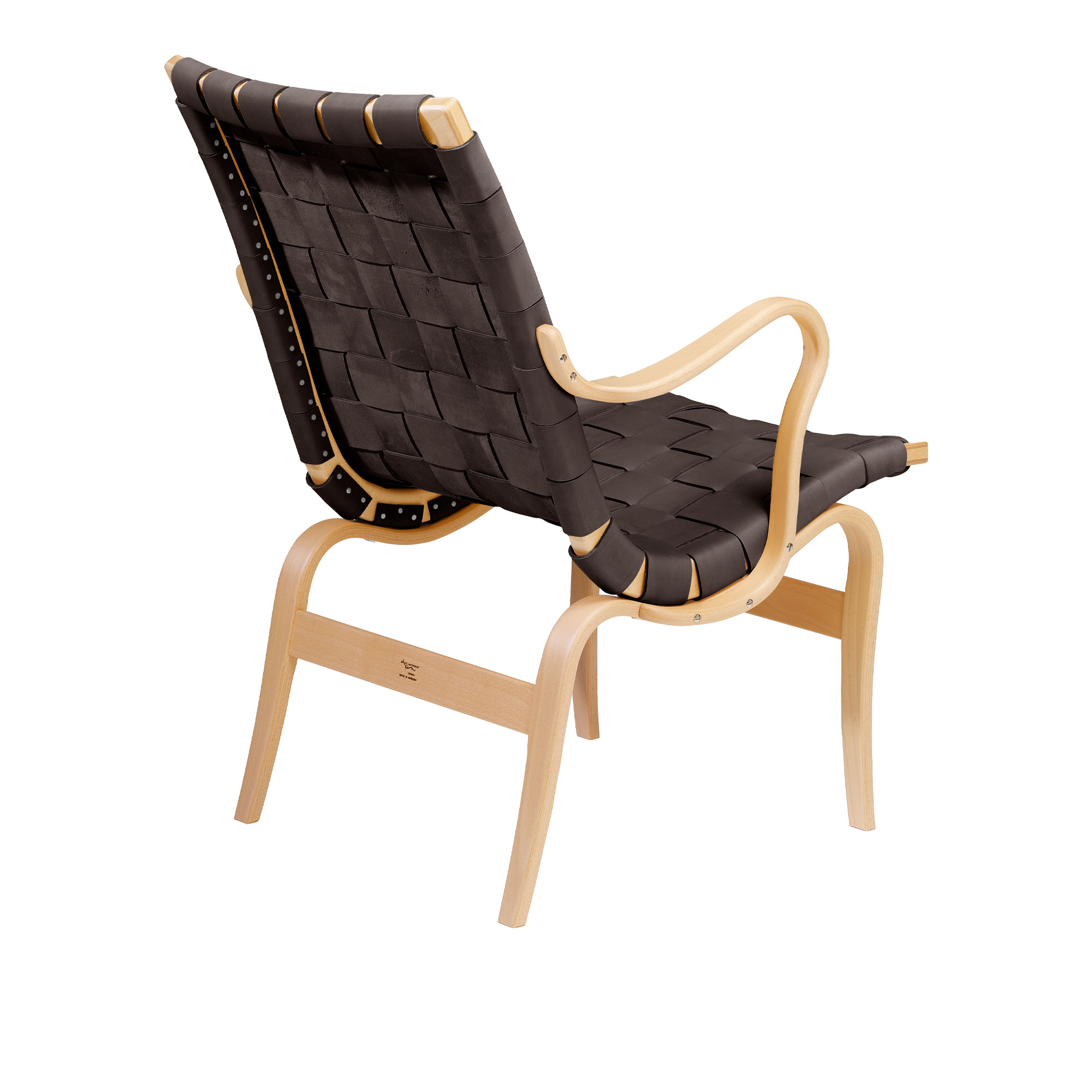 Bruno Mathsson International - Mi 472 Eva - Låg rygg med armstöd - Klarlackad bok/Flätade läderremmar brun - Fåtöljer - Bruno Mathsson