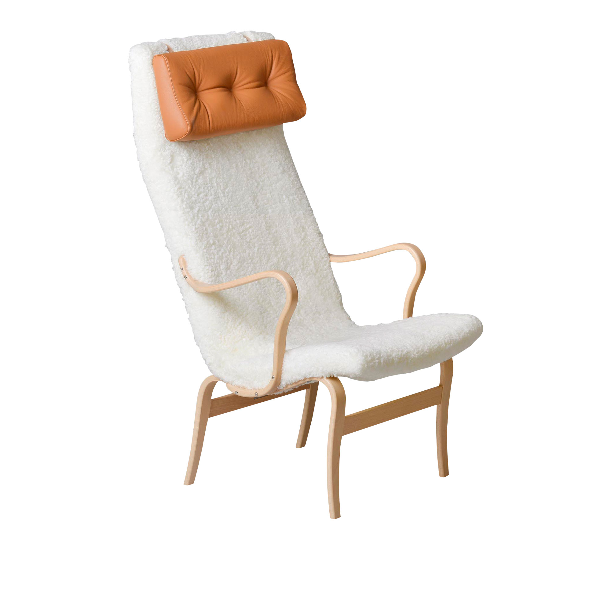 Bruno Mathsson International - Mi 473 Eva - Hög rygg - Klarlackad bok - Fårskinn Offwhite/Elmosoft 54035 - Fåtöljer - Bruno Mathsson - Vit - Läder/Trä/Ull