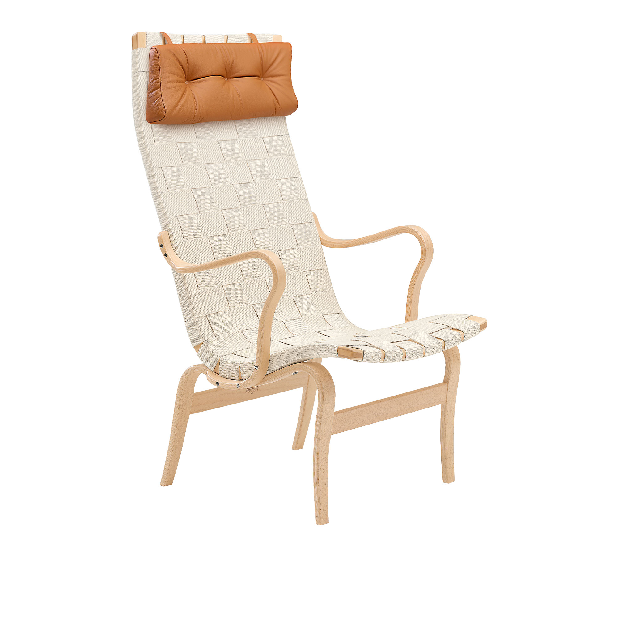 Bruno Mathsson International - Mi 473 Eva - Hög rygg - Klarlackad bok - Flätad linnegjord ljus/Elmosoft 54035 - Fåtöljer - Bruno Mathsson - Beige - Läder/Naturmaterial/Trä