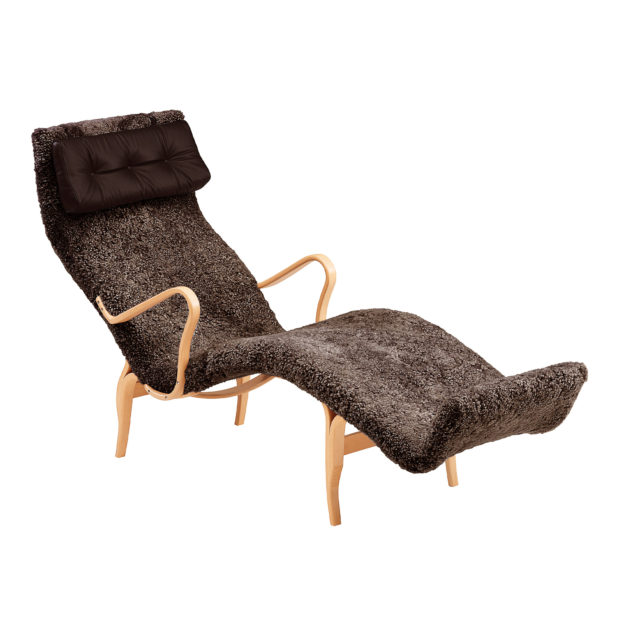 Pernilla 3 designades år 1944 av den välkända designern Bruno Mathsson, och tillverkas än idag av varumärket Bruno Mathsson International. Precis som de andra versionerna av fåtöljen har även denna liggfåtölj fått sitt namn efter journalisten Pernilla Thunberger efter att hon besökt formgivaren för en intervju tidigare det året. Idag är Pernilla-serien en av Sveriges mest kända fåtöljer. Den kommer med en sits i massiv björk och en konstruktion av böjlimmad bok. Fåtöljen finns att välja i en rad olika stilrena utföranden. För maximal komfort är liggfåtöljen designad med en läderklädd nackkudde. Vi har valt att visa de mest populära kombinationerna av nackkudde och klädsel, men du är varmt välkommen att kontakta oss om du önskar ett annat utförande på nackkudden.