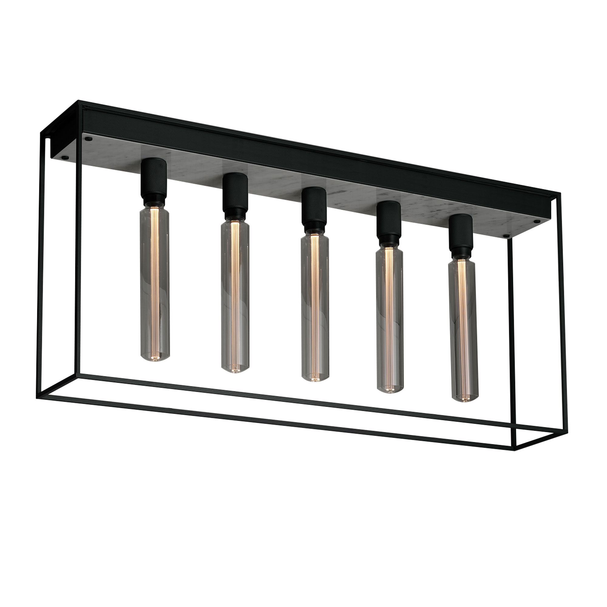 Caged Ceiling 5.0 är en imponerande taklampa i industriell stil från Buster + Punch, med unika drag. Den tillhör Caged-serien, designad av Massimo Buster Minale, känd för vägglampor och taklampor i olika storlekar. Tillverkad av robusta material som marmor eller borstat stål med tunna metallstavar som omger ljuskällorna. Välj mellan vit marmor, svart marmor eller borstat stål för skivan. Caged Ceiling 5.0 har fem avlånga ljuskällor, Buster Bulb Tube, som sprider varmvitt ljus i alla riktningar samt en spotlight-effekt nedåt. Perfekt för köket med sin industriella känsla och kan kombineras för enhetlig inredning. LED-ljuskällorna är dimbara, men kräver en LED-kompatibel dimmer. Observera att ljuset kan uppfattas annorlunda på bild, se Buster Bulb Tube eller miljöbilder för mer rättvis visning.