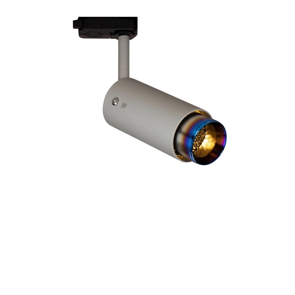 Exhaust Track, en strålkastarlampa från Buster + Punch, erbjuder en elegant design med sin metallkonstruktion i den pulverlackerade nyansen Stone, kompletterad av en valbar dekorativ detalj i fyra olika utföranden. Denna armatur är utsmyckad med ett linjärt mönster som inte bara fångar ljus på ett unikt sätt för att framkalla en metallisk lyster, utan dess inbyggda filter säkerställer även ett riktat ljus utan att blända betraktaren. Med sin flexibilitet och justerbarhet, ackompanjerad av en 3-fas adapter kompatibel med system som Global och Nordic, erbjuder Exhaust Track en mångsidig belysningslösning.