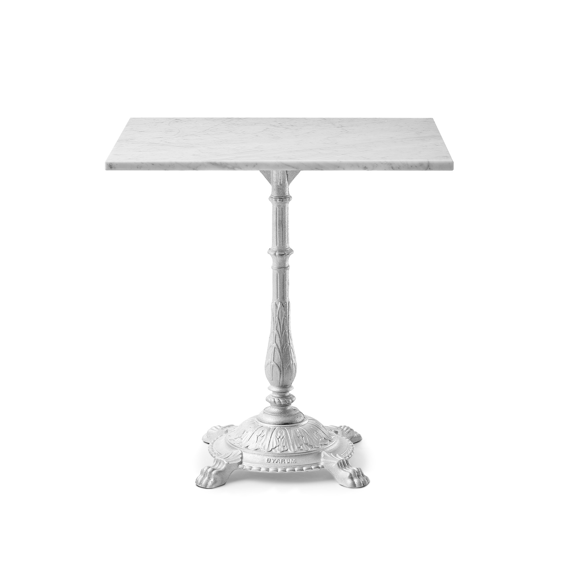 Byarums Bruk - Bord Classic Café 60 x 70 cm 4-tass – Marmor Vit Carrara/Natur (Rå Aluminium) - Småbord och sidobord utomhus - Silver - Metall/Sten