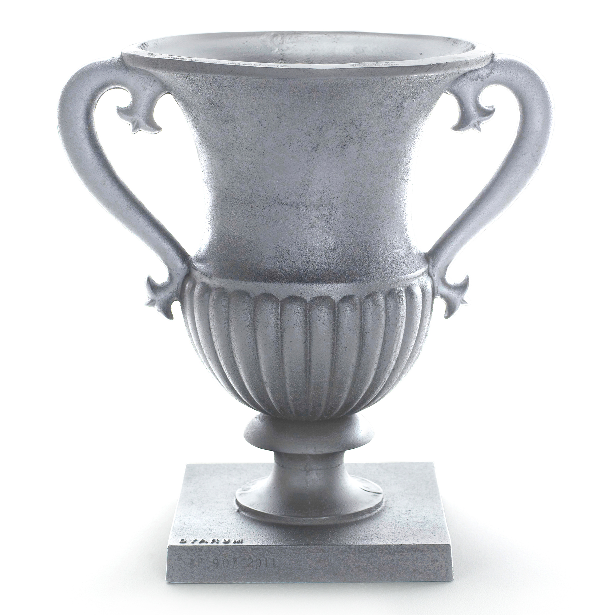 Prakturna No.4 från varumärket Byarums bruk är en elegant handgjord urna med ursprungsmodell från 1800-talet. Denna urna är tillverkad i Byarums bruks gjuteri med största omsorg för detaljer. Den är signerad och numrerad av hantverkaren. Urnan är tillverkad av rå aluminium eller svartlackerad metall och väger 35 kg. Den är konstruerad med dräneringshål i botten. Urnan är en elegant och tidlös trädgårdsdekoration.