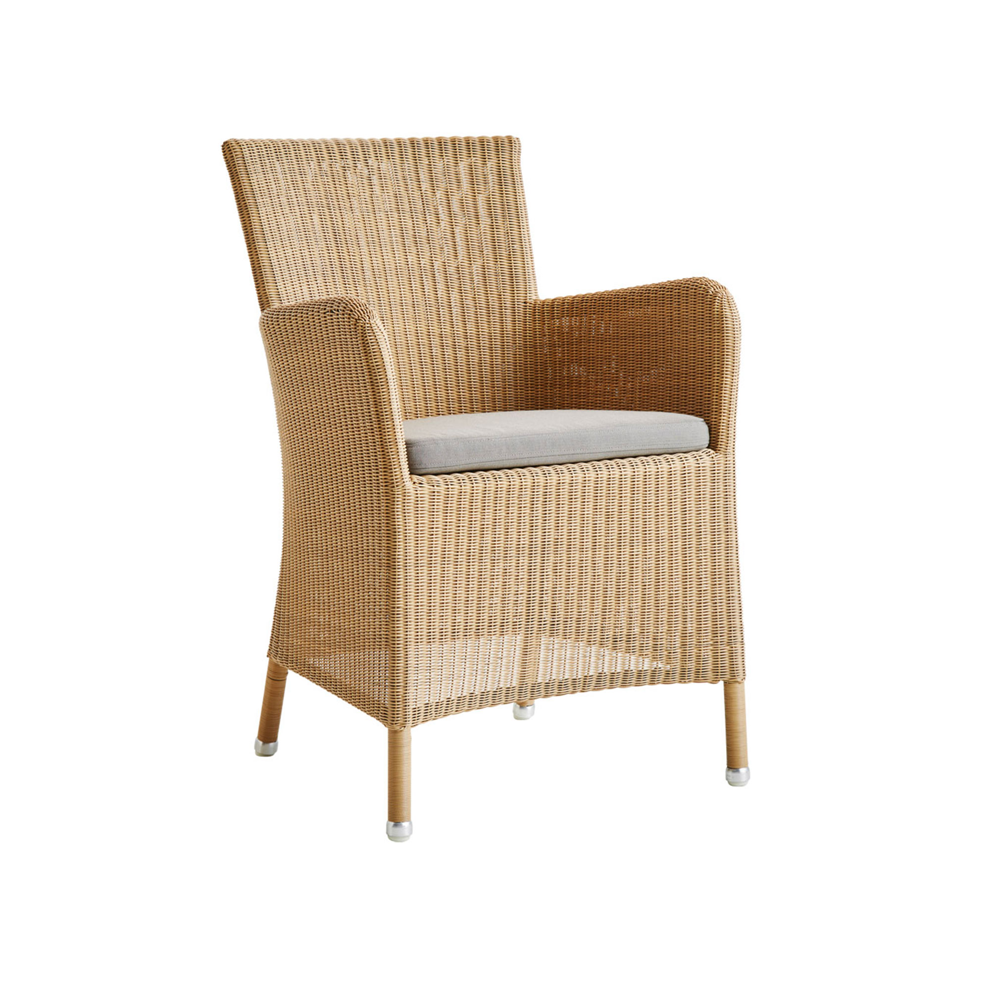 Cane-Line - Hampsted Karmstol, Cane-Line Weave, Natural,Cushion: Tempotest, Taupe - Matstolar utomhus - Cane-line Design Team - Träfärgad - Textilmaterial/Syntetiskt