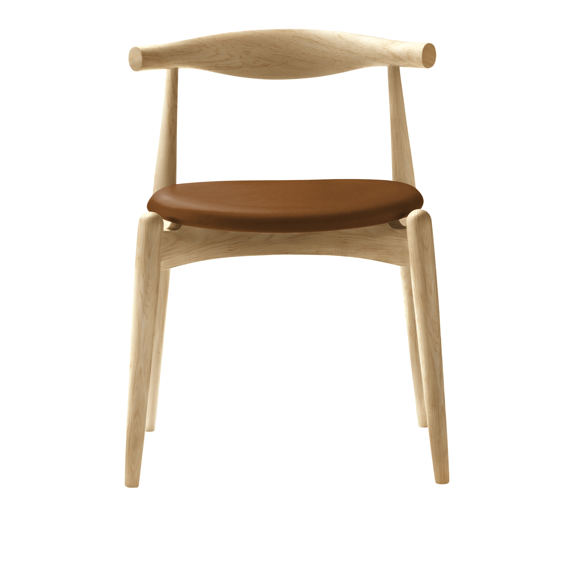 CH20 Elbow Chair från Carl Hansen & Son är designad av Hans J. Wegner år 1956, men lanserades för första gången år 2005.En kompakt, stapelbar matstol som även kan användas, tack vare att ryggstödet är bra anpassat för den nedre delen av ryggen som arbetsstol vid ett bord eller skrivbord. Den unika sitsen är tillverkad i 11-lagers laminerat trä och ger exceptionell stabilitet.Ramen finns i bok, ask och ek i olika utföranden som tvål, olja, lack, bets, färg och sitsen i ett stort utbud av tyger och läder.