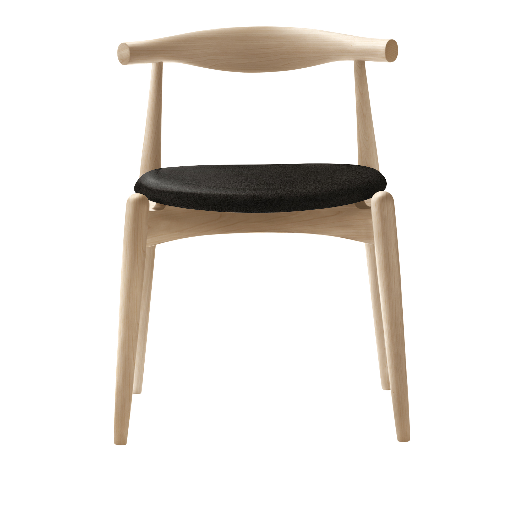 CH20 Elbow Chair från Carl Hansen & Son är designad av Hans J. Wegner år 1956, men lanserades för första gången år 2005. En kompakt, stapelbar matstol som även kan användas, tack vare att ryggstödet är bra anpassat för den nedre delen av ryggen som arbetsstol vid ett bord eller skrivbord. Den unika sitsen är tillverkad i 11-lagers laminerat trä och ger exceptionell stabilitet. Ramen finns i bok, ask och ek i olika utföranden som tvål, olja, lack, bets, färg och sitsen i ett stort utbud av tyger och läder.