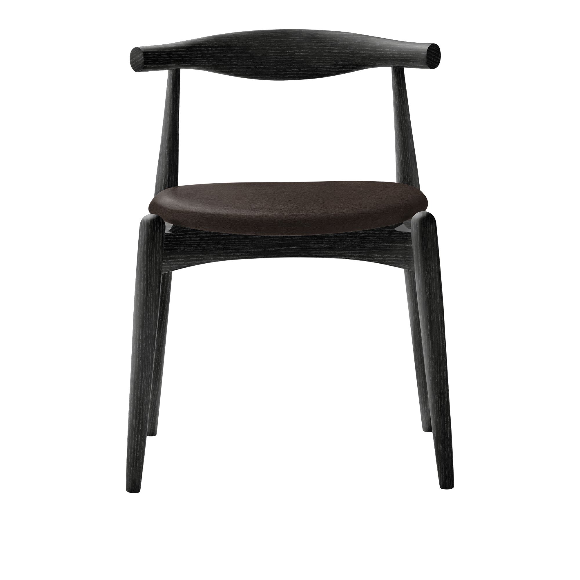 CH20 Elbow Chair från Carl Hansen & Son är designad av Hans J. Wegner år 1956, men lanserades för första gången år 2005.En kompakt, stapelbar matstol som även kan användas, tack vare att ryggstödet är bra anpassat för den nedre delen av ryggen som arbetsstol vid ett bord eller skrivbord. Den unika sitsen är tillverkad i 11-lagers laminerat trä och ger exceptionell stabilitet.Ramen finns i bok, ask och ek i olika utföranden som tvål, olja, lack, bets, färg och sitsen i ett stort utbud av tyger och läder.