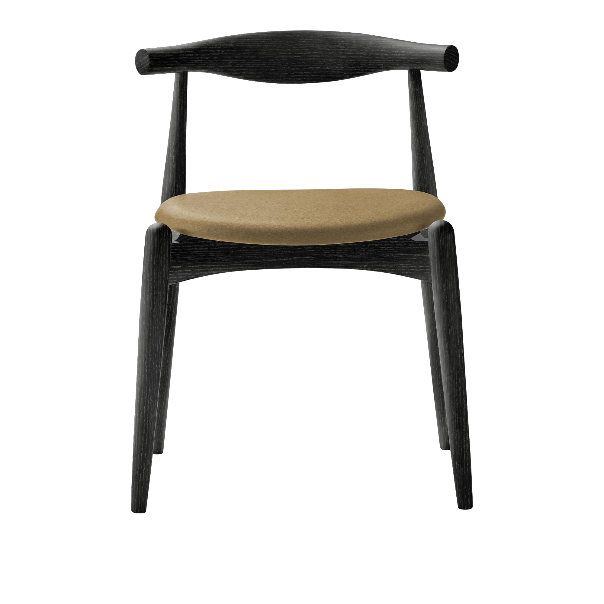 CH20 Elbow Chair från Carl Hansen & Son är designad av Hans J. Wegner år 1956, men lanserades för första gången år 2005.En kompakt, stapelbar matstol som även kan användas, tack vare att ryggstödet är bra anpassat för den nedre delen av ryggen som arbetsstol vid ett bord eller skrivbord. Den unika sitsen är tillverkad i 11-lagers laminerat trä och ger exceptionell stabilitet.Ramen finns i bok, ask och ek i olika utföranden som tvål, olja, lack, bets, färg och sitsen i ett stort utbud av tyger och läder.