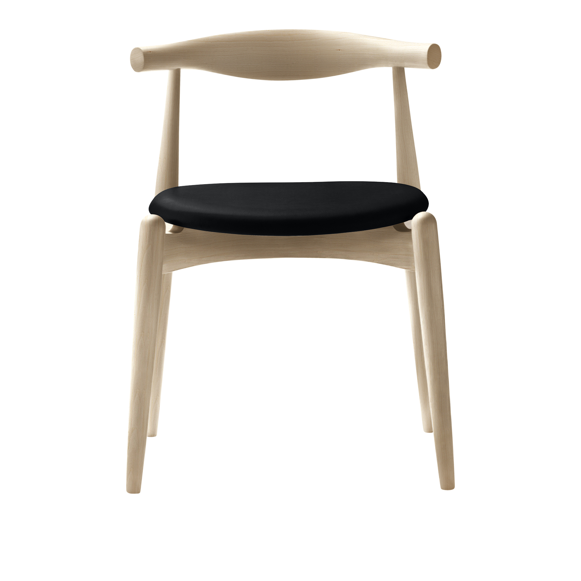 CH20 Elbow Chair från Carl Hansen & Son är designad av Hans J. Wegner år 1956, men lanserades för första gången år 2005. En kompakt, stapelbar matstol som även kan användas, tack vare att ryggstödet är bra anpassat för den nedre delen av ryggen som arbetsstol vid ett bord eller skrivbord. Den unika sitsen är tillverkad i 11-lagers laminerat trä och ger exceptionell stabilitet. Ramen finns i bok, ask och ek i olika utföranden som tvål, olja, lack, bets, färg och sitsen i ett stort utbud av tyger och läder.