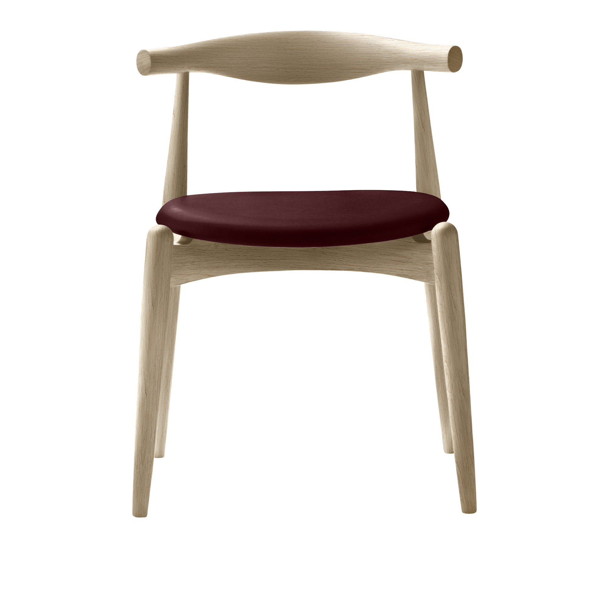 CH20 Elbow Chair från Carl Hansen & Son är designad av Hans J. Wegner år 1956, men lanserades för första gången år 2005.En kompakt, stapelbar matstol som även kan användas, tack vare att ryggstödet är bra anpassat för den nedre delen av ryggen som arbetsstol vid ett bord eller skrivbord. Den unika sitsen är tillverkad i 11-lagers laminerat trä och ger exceptionell stabilitet.Ramen finns i bok, ask och ek i olika utföranden som tvål, olja, lack, bets, färg och sitsen i ett stort utbud av tyger och läder.
