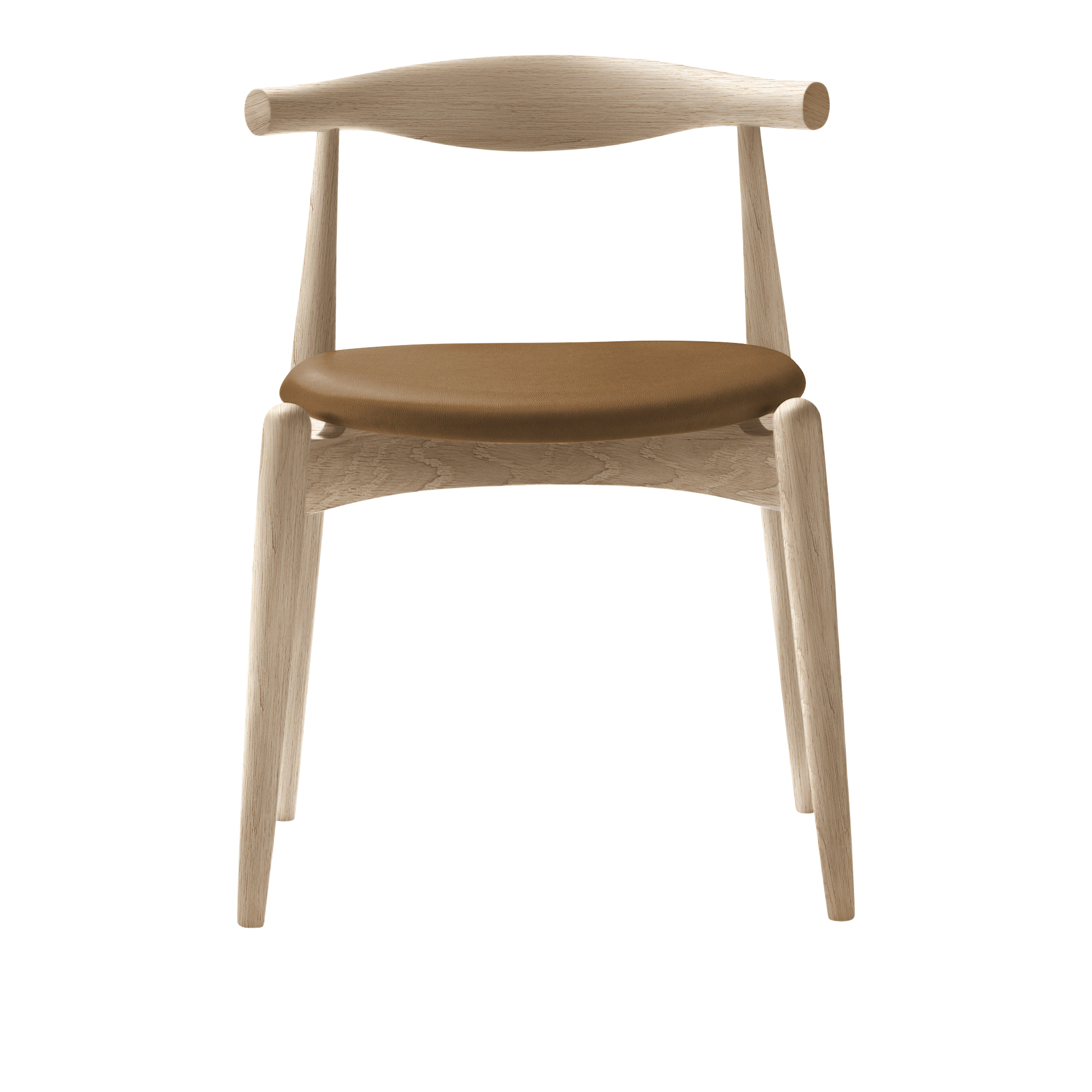 CH20 Elbow Chair från Carl Hansen & Son är designad av Hans J. Wegner år 1956, men lanserades för första gången år 2005.En kompakt, stapelbar matstol som även kan användas, tack vare att ryggstödet är bra anpassat för den nedre delen av ryggen som arbetsstol vid ett bord eller skrivbord. Den unika sitsen är tillverkad i 11-lagers laminerat trä och ger exceptionell stabilitet.Ramen finns i bok, ask och ek i olika utföranden som tvål, olja, lack, bets, färg och sitsen i ett stort utbud av tyger och läder.