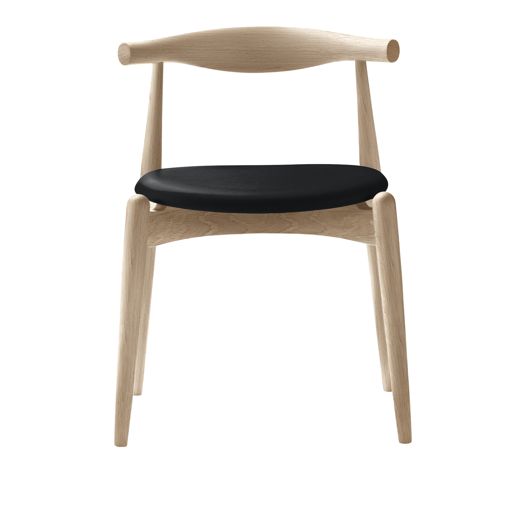 CH20 Elbow Chair från Carl Hansen & Son är designad av Hans J. Wegner år 1956, men lanserades för första gången år 2005.En kompakt, stapelbar matstol som även kan användas, tack vare att ryggstödet är bra anpassat för den nedre delen av ryggen som arbetsstol vid ett bord eller skrivbord. Den unika sitsen är tillverkad i 11-lagers laminerat trä och ger exceptionell stabilitet.Ramen finns i bok, ask och ek i olika utföranden som tvål, olja, lack, bets, färg och sitsen i ett stort utbud av tyger och läder.