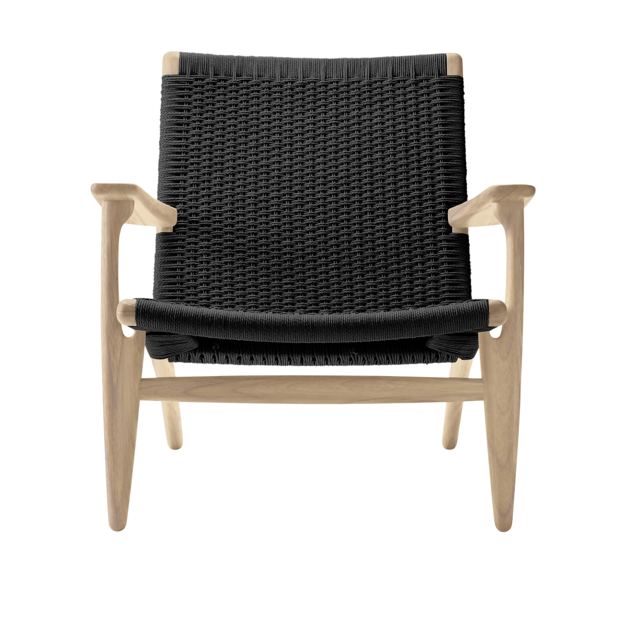 Idag kan du välja fåtöljen CH25 i flera olika varianter, och här kan du göra ett val mellan en klarlackad, tvålad, vitoljad, svartlackad eller oljad finish. Dessa kombineras sedan med en svart sits och rygg, men i vår webbutik hittar du även andra varianter med en naturfärgad sits såväl som modeller i valnöt. CH25 är en väldigt robust och stabil fåtölj med ett omsorgsfullt hantverk bakom. Bara flätningen kräver 400 meter snöre och tar hela 10 timmar att fläta – för de mest erfarna hantverkarna.