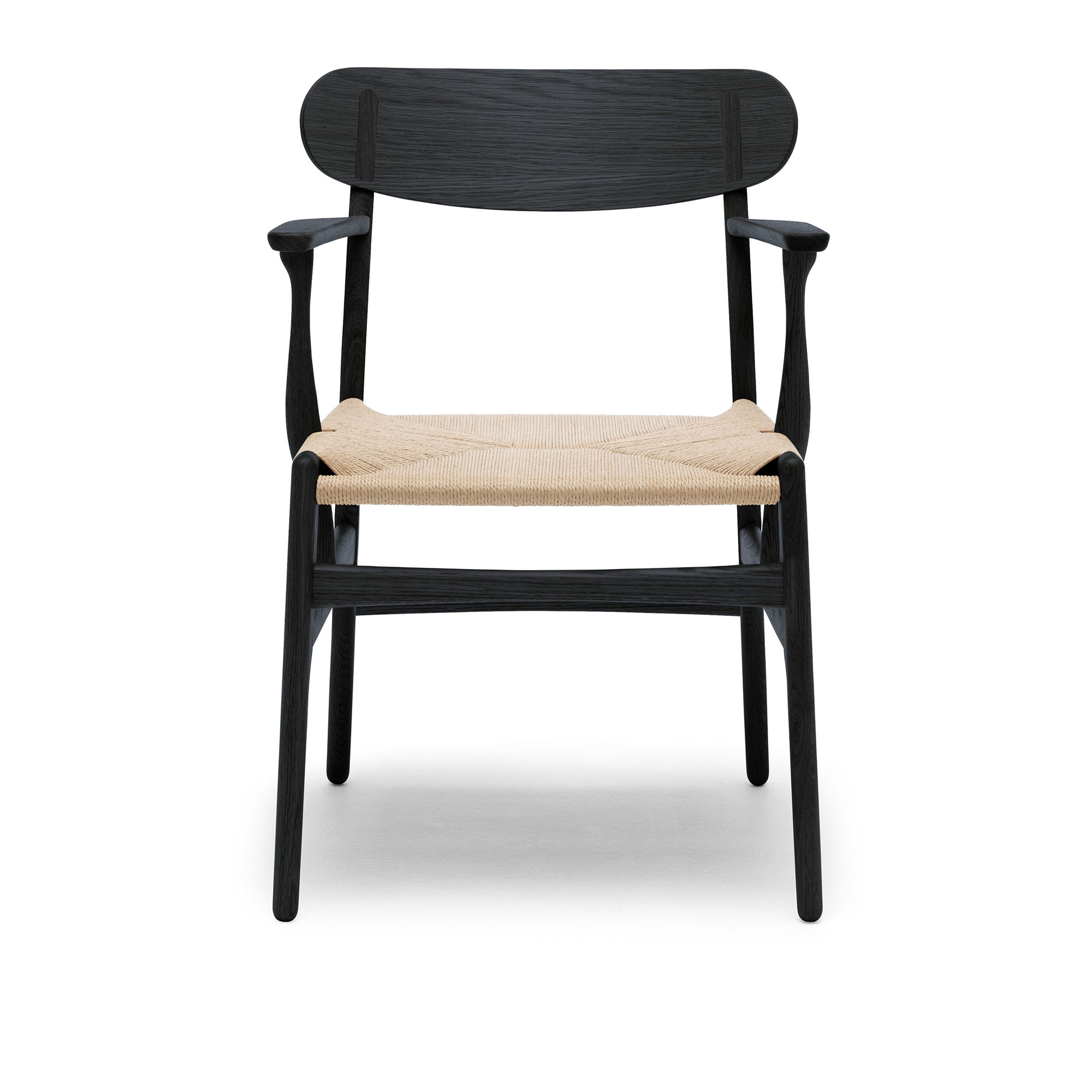 Carl Hansen - CH26, Svartlackad ek, Naturflätat papperssnöre - Matstolar - Hans J. Wegner - Svart - Trä