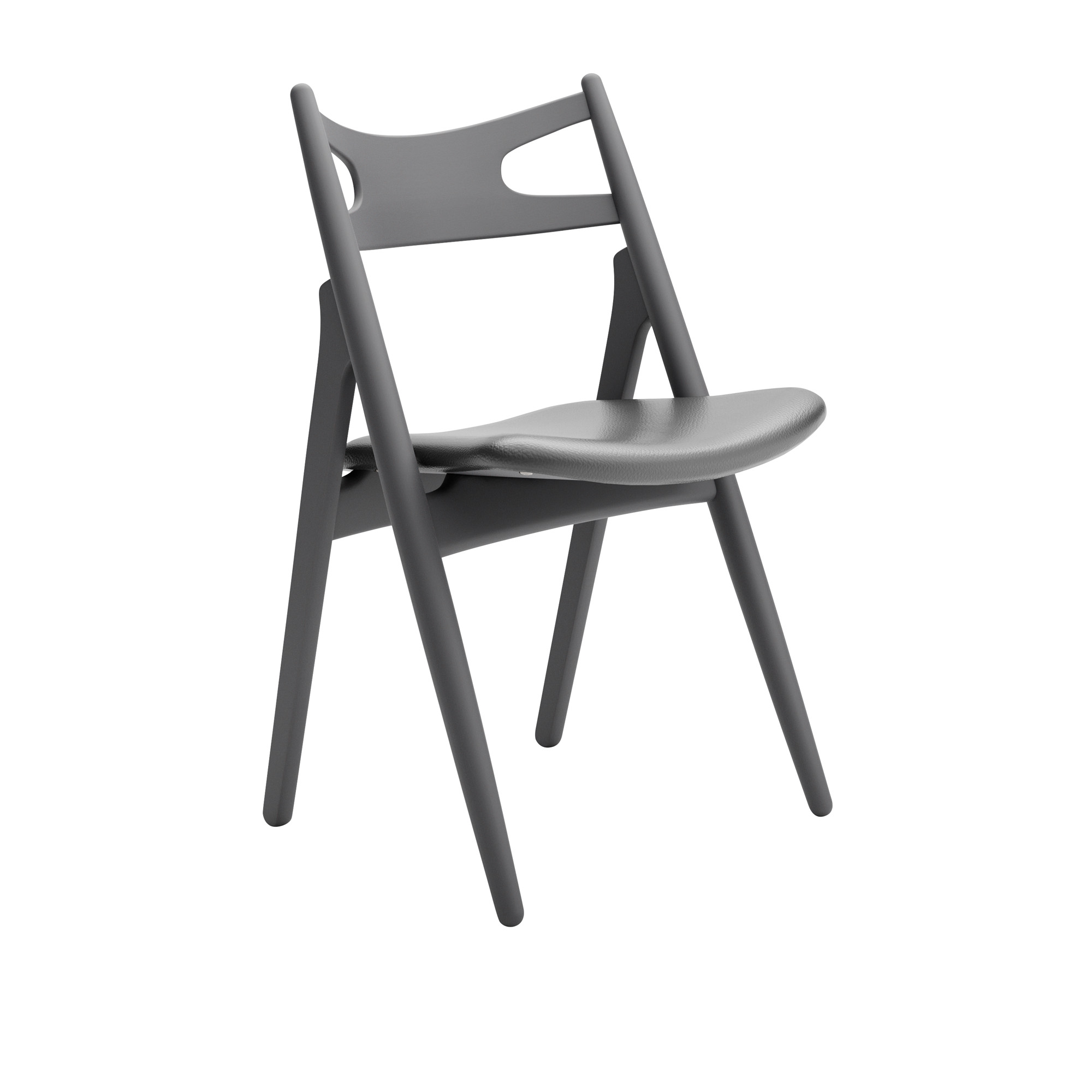 Carl Hansen - CH29P Sawbuck Chair, Lackerad Bok, Anthracite Grey, Lädergrupp A Loke - 7150 - Matstolar - Hans J. Wegner - Grå - Läder/Trä