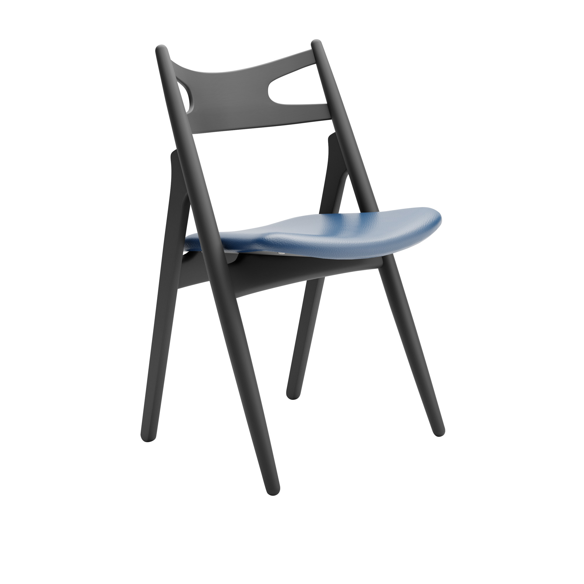 Carl Hansen - CH29P Sawbuck Chair, Lackerad Bok, Black, Lädergrupp A Loke - 7310 - Matstolar - Hans J. Wegner - Svart - Läder/Trä