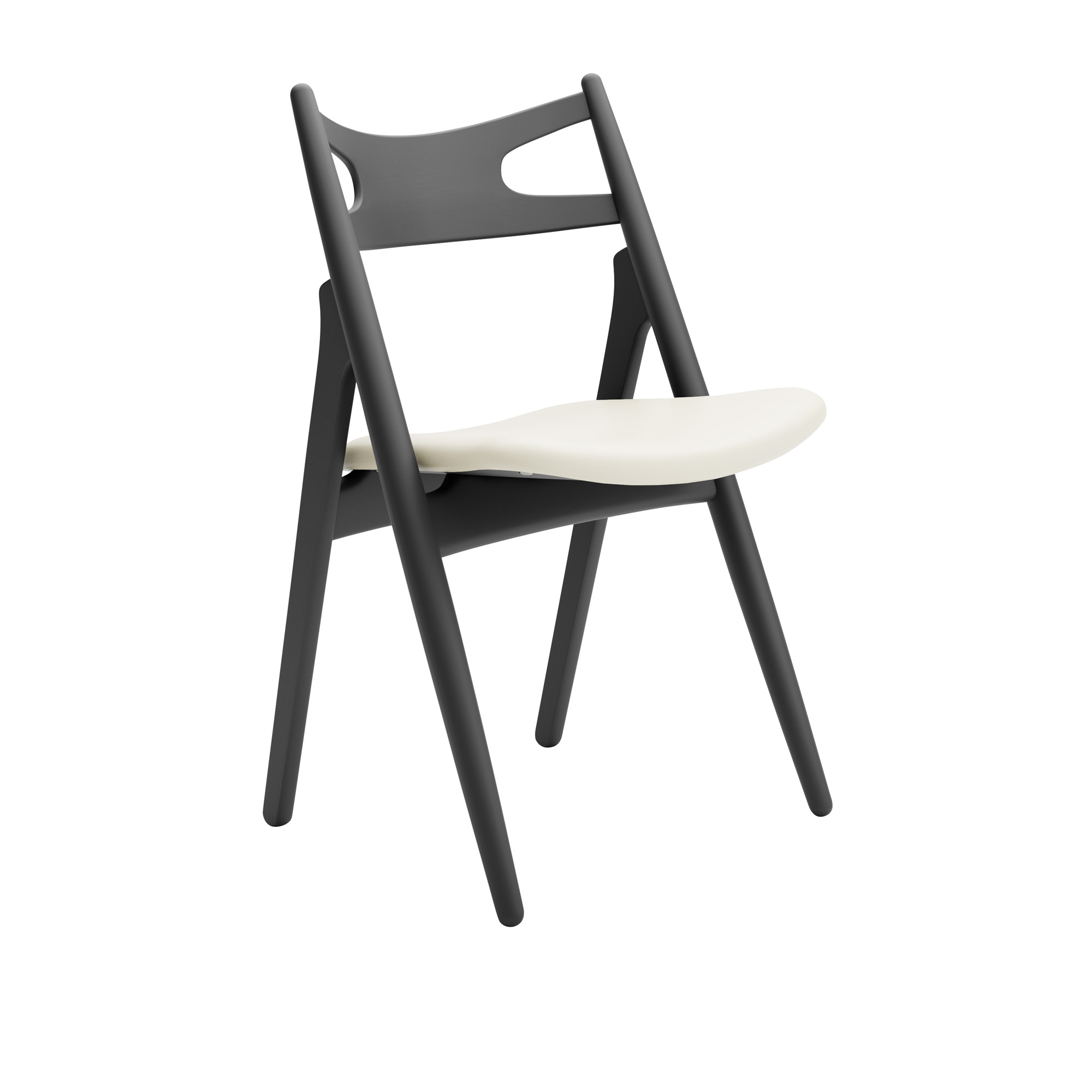 Carl Hansen - CH29P Sawbuck Chair, Lackerad Bok, Black, Lädergrupp B Thor - 300 - Matstolar - Hans J. Wegner - Svart - Läder/Trä