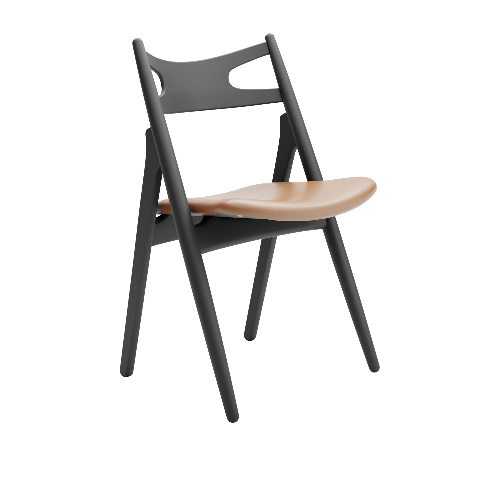 Carl Hansen - CH29P Sawbuck Chair, Lackerad Bok, Black, Lädergrupp B Thor - 307 - Matstolar - Hans J. Wegner - Svart - Läder/Trä